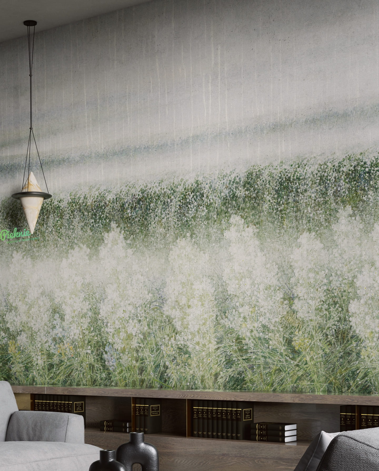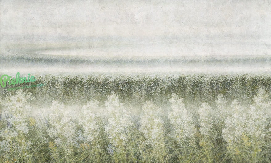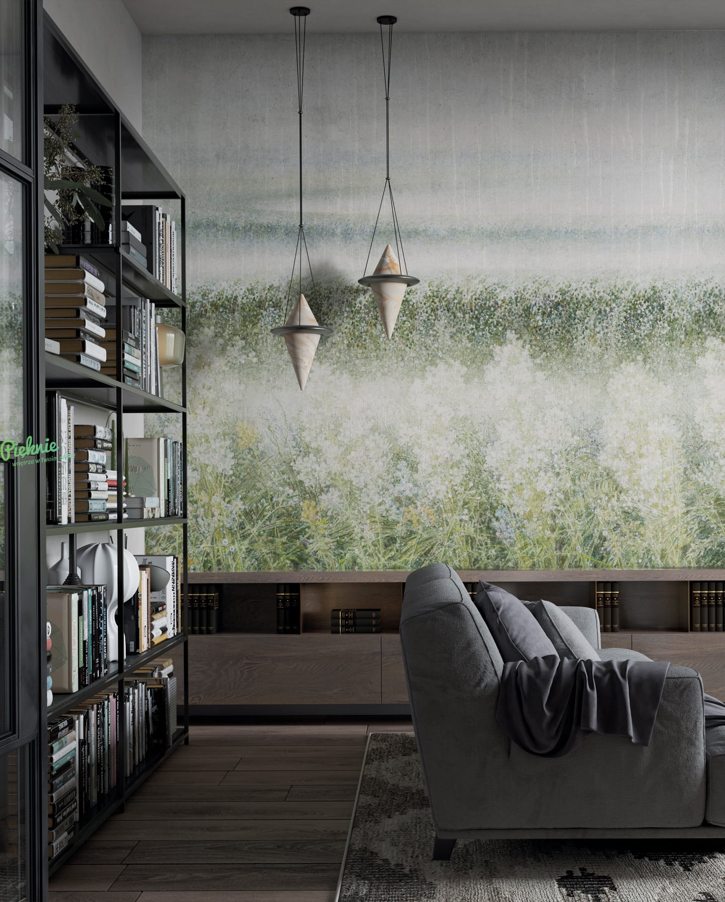 Linea Wonderwall Studio fototapeta zielone łąki pokryte mgłą
