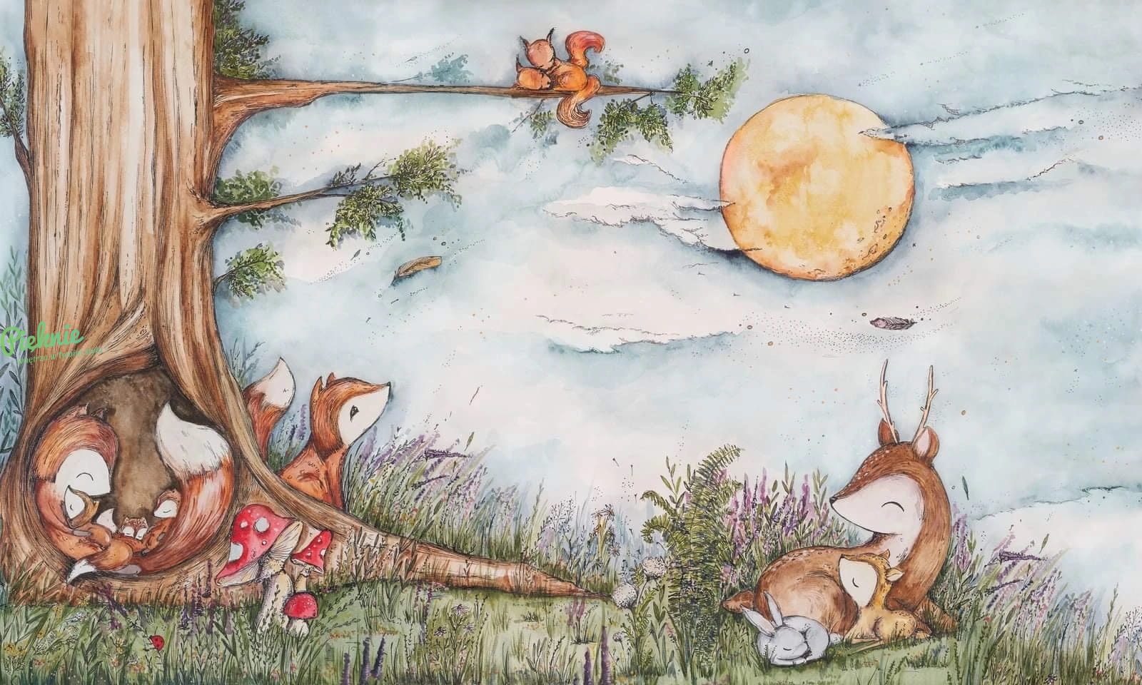 Liski w lesie piękna fototapeta ścienna do pokoju dziecięcego na wymiar