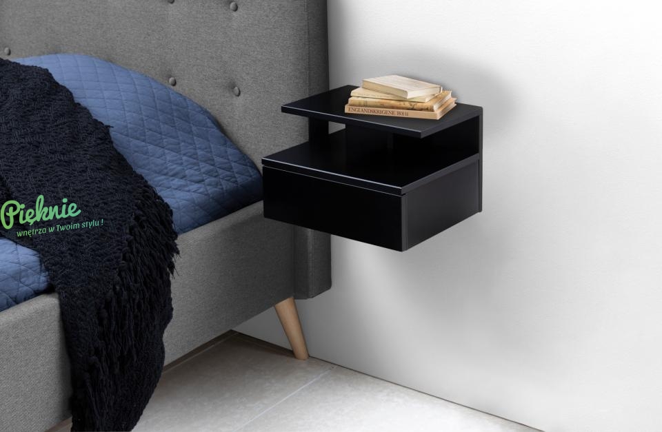 Mała wisząca szafka nocna z półką i szufladą 35x32 czarna
