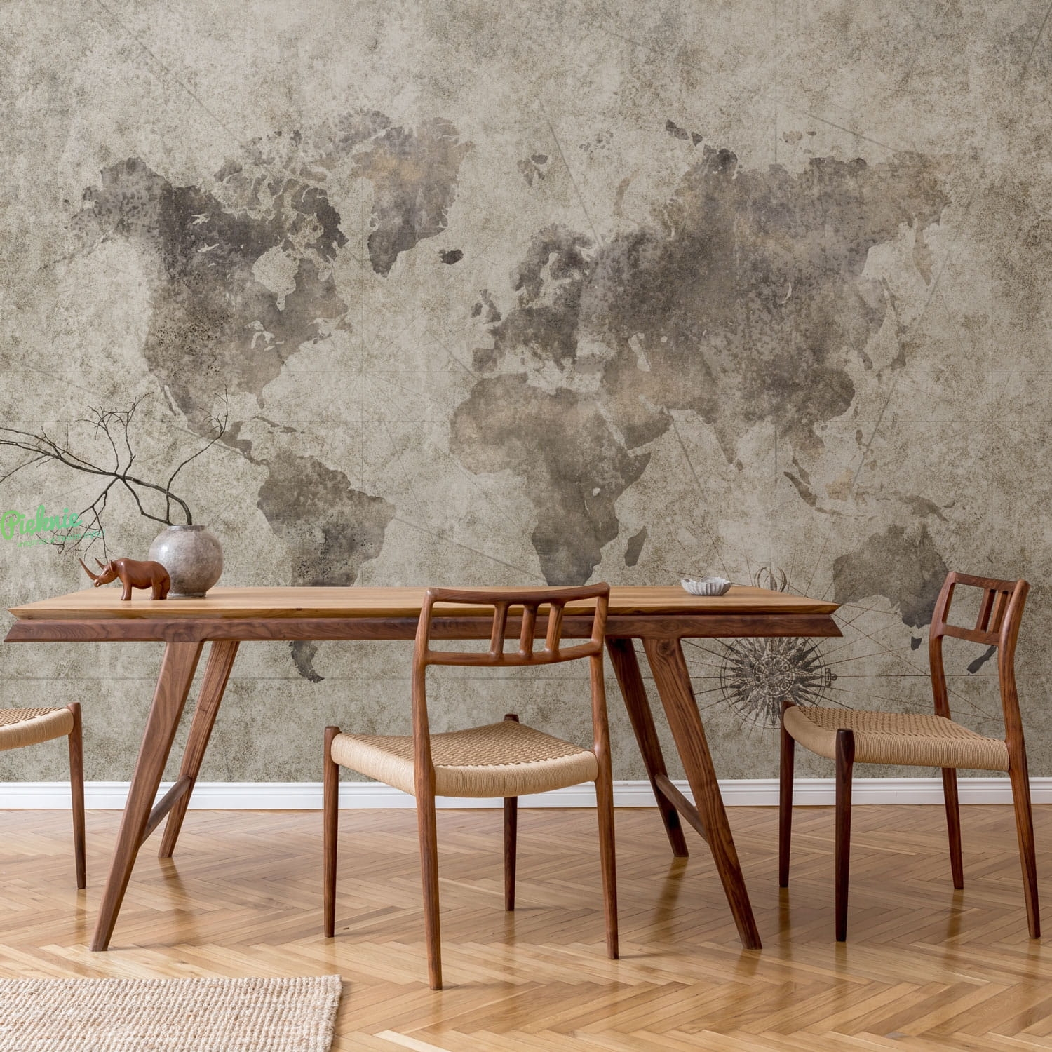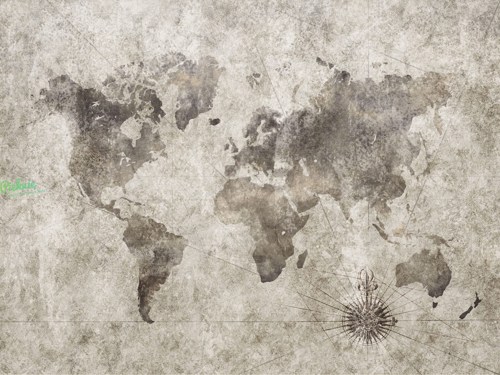 Mapa świata z różą wiatrów fototapeta na flizelinie - wymiar indywidualny