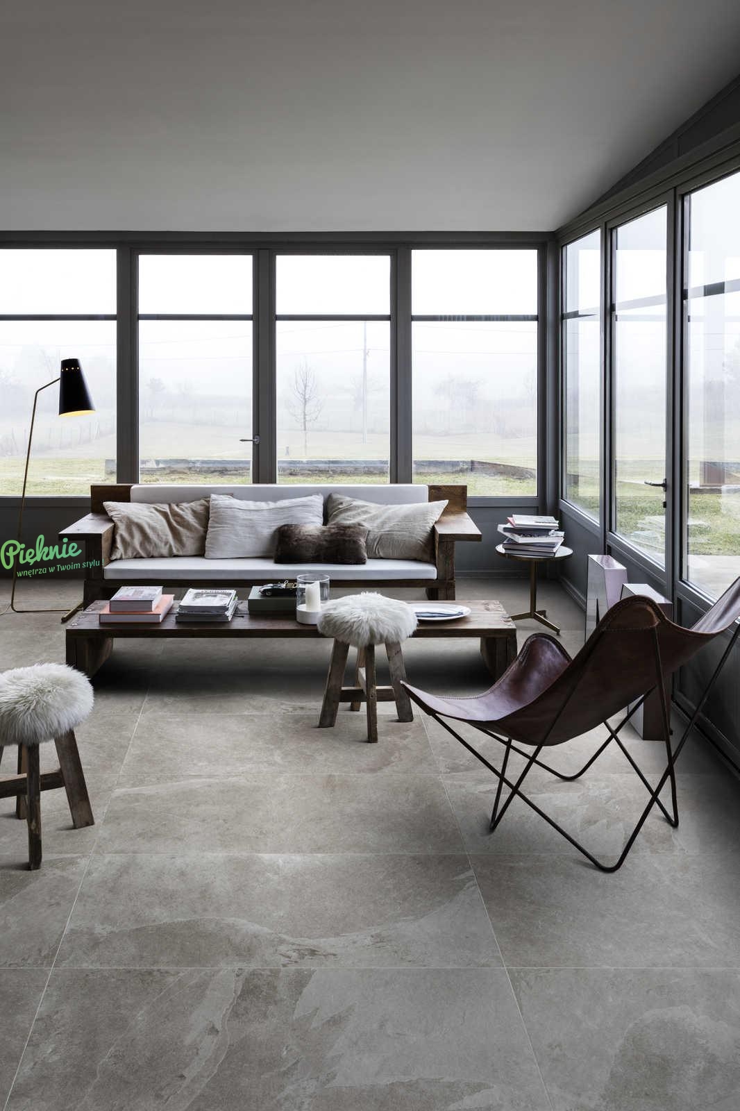 Płytki gresowe Marazzi Mystone Ardesia imitujące kamień.