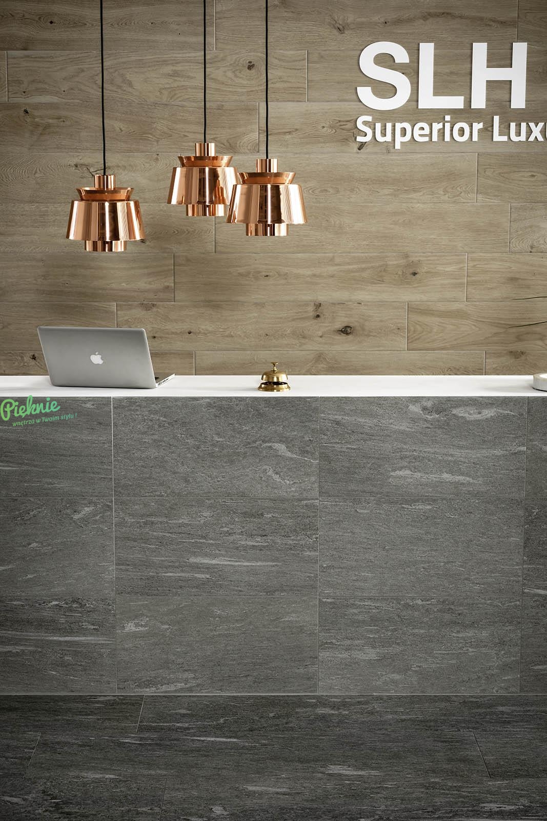Płytki gresowe Marazzi Mystone Pietra di Vals imitujące kamień.