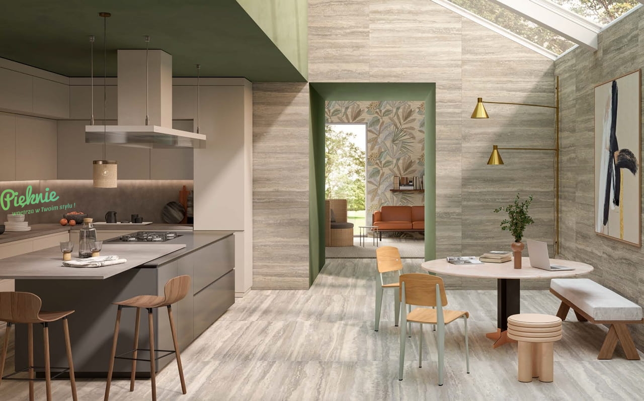 Marazzi Mystone Travertino to kolekcja wiernie odzwierciedlająca naturalny wygląd trawertynu. Płytki posiadają realistycznie oddany rysunek i strukturę kamienia, dostępne są w trzech ponadczasowych kolorach: kremowego (Classico), jasnej szarości (Silver) oraz beżu (Navona). Kolekcję uzupełniają dekory o strukturze prążków, mozaiki oraz płytki z nadrukiem botanicznym i motywem klasycznych ornamentów.