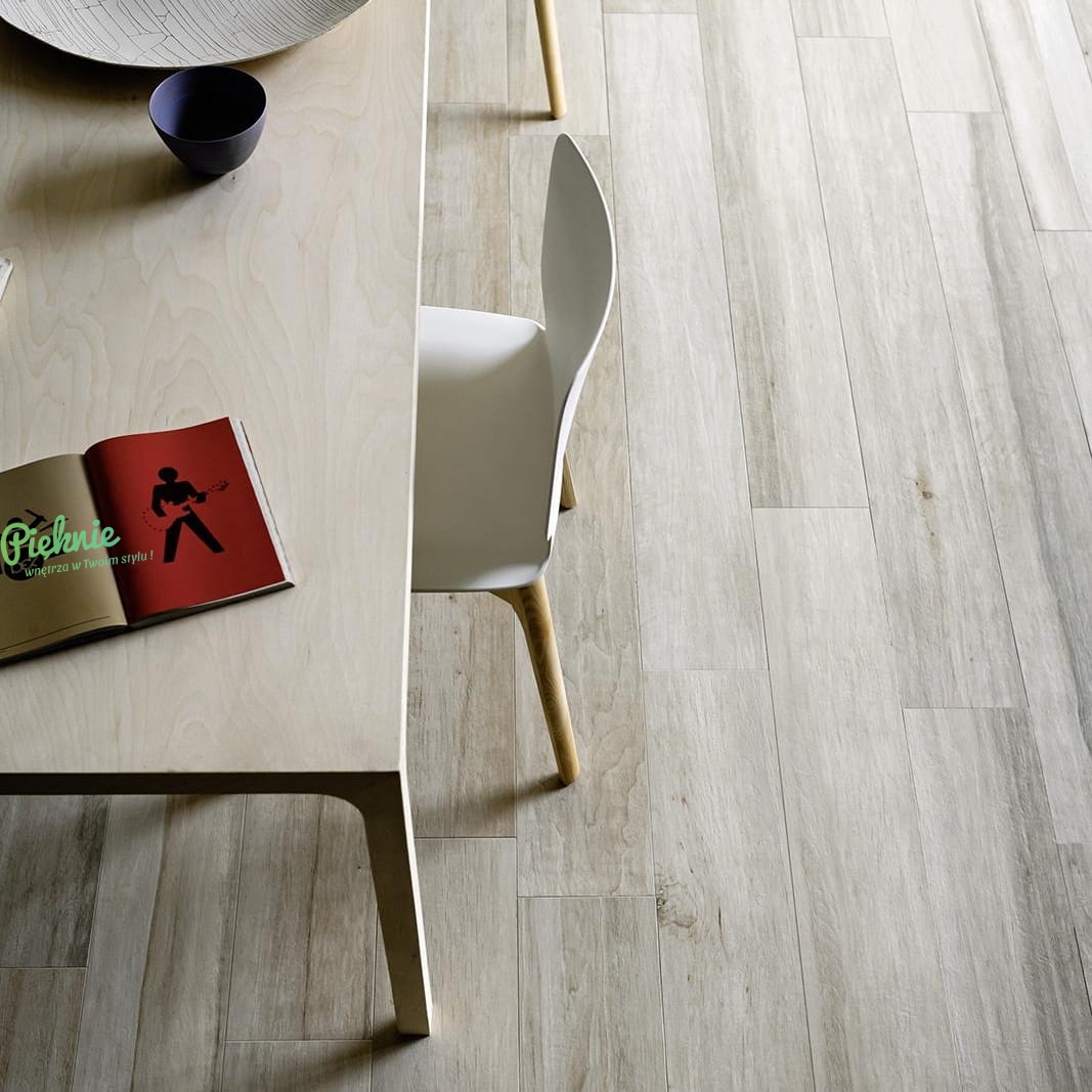 Rektyfikowana gresowa płytka imitująca drewno marki Marazzi.