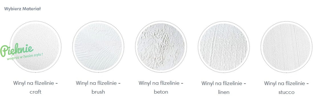 - Materiał: flizelina pokryta twardym winylem (strukturalna)