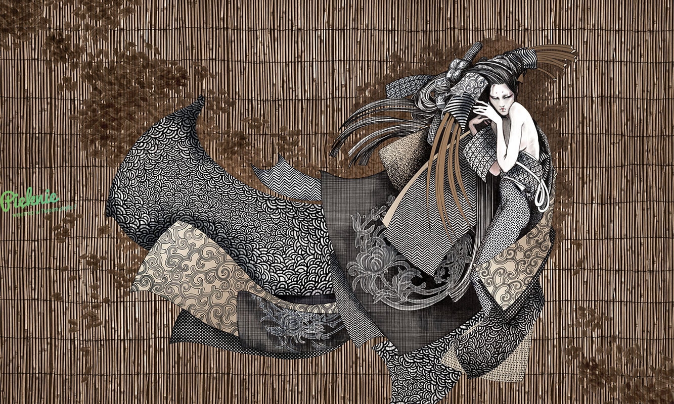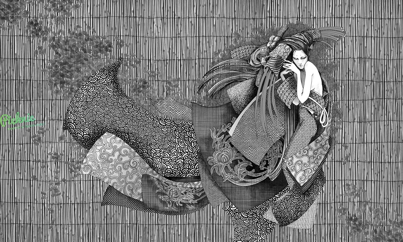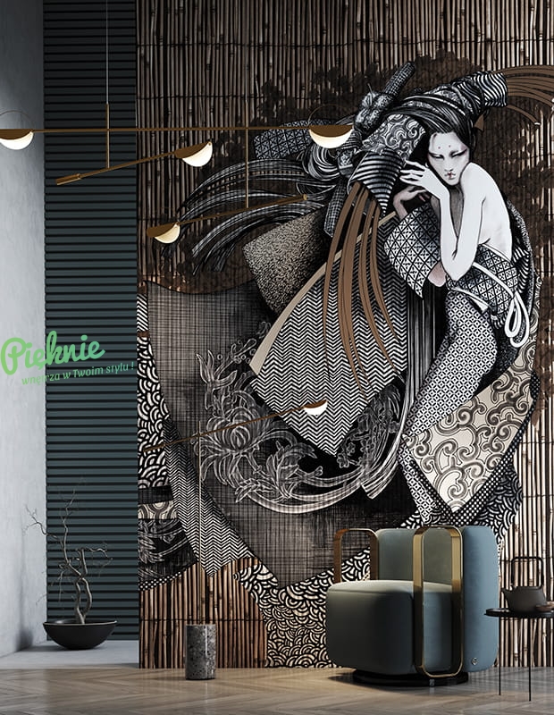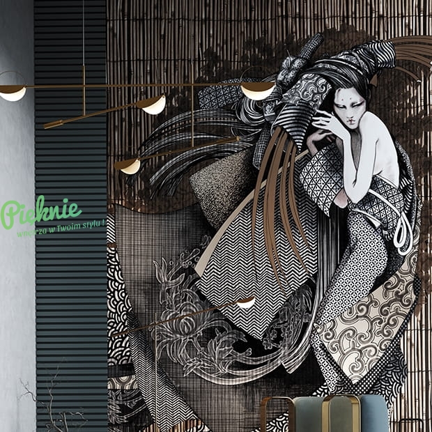 Nowoczesna fototapeta ścienna na fizelinie z postacią Gejszy Asami