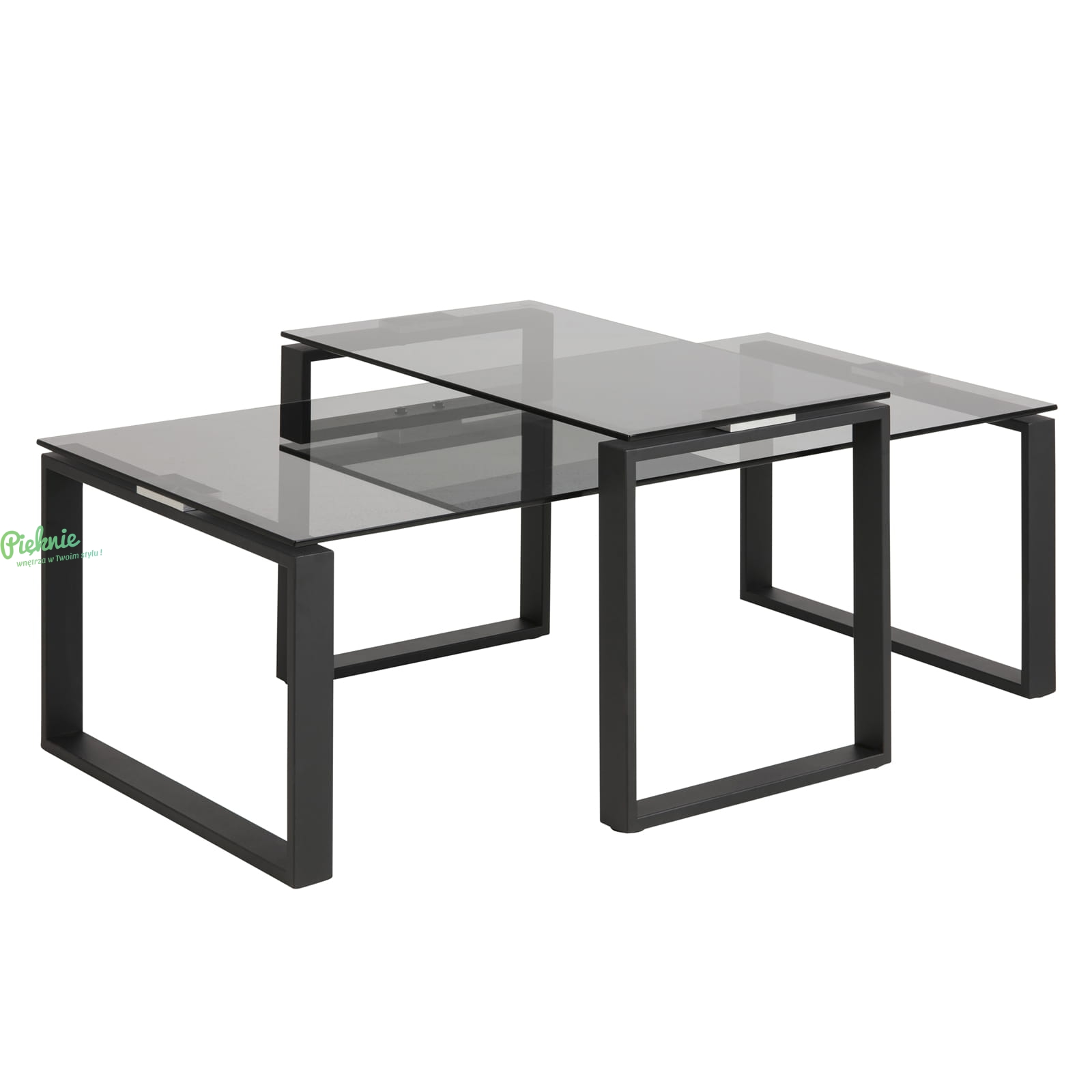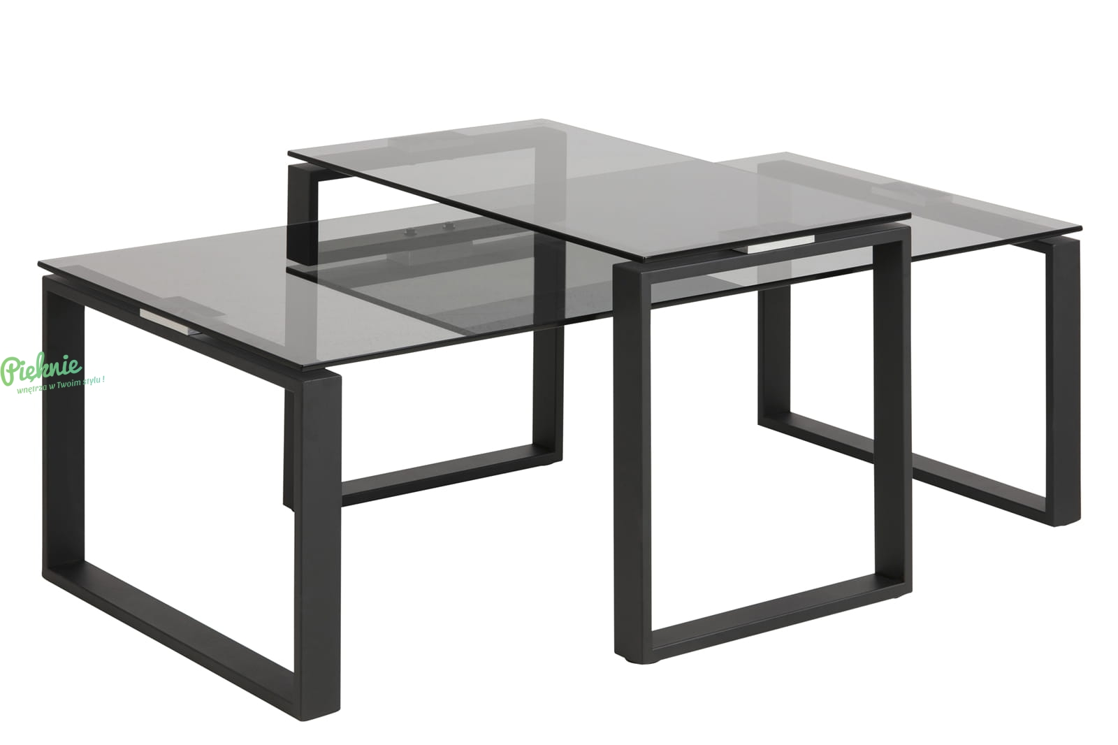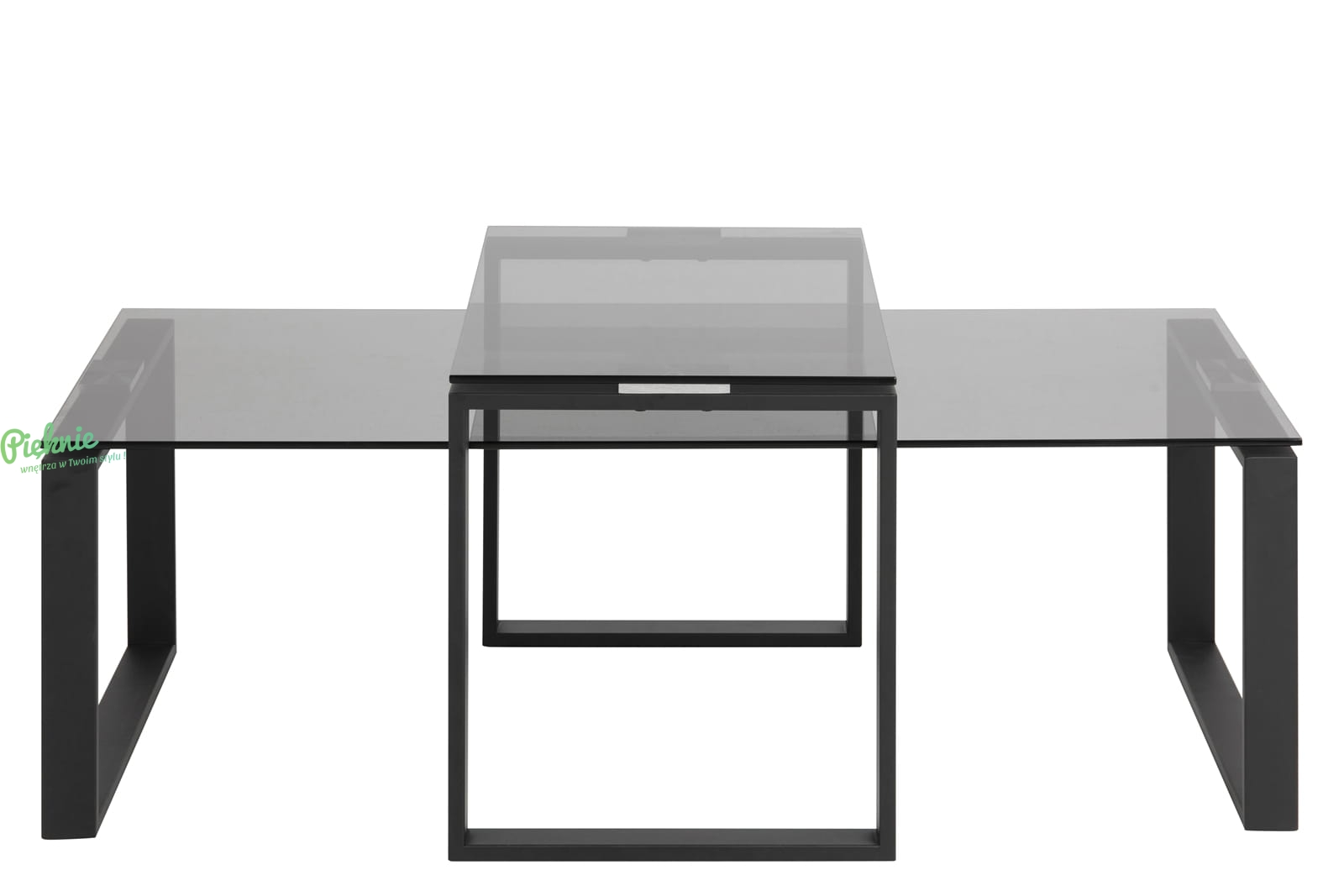 Nowoczesna ława z czarną metalową podstawą 115x55 blaty szklane komplet stolików