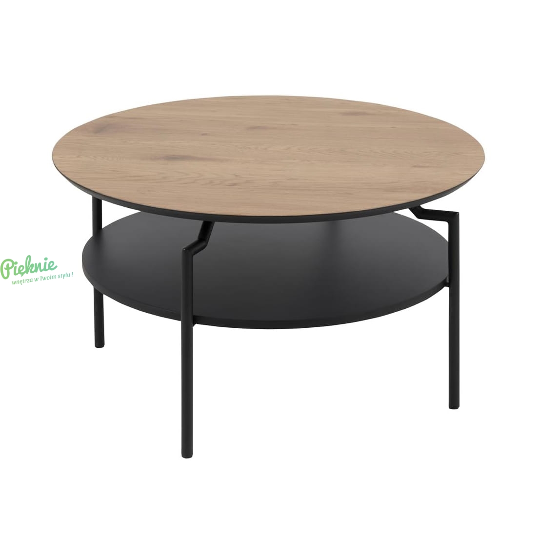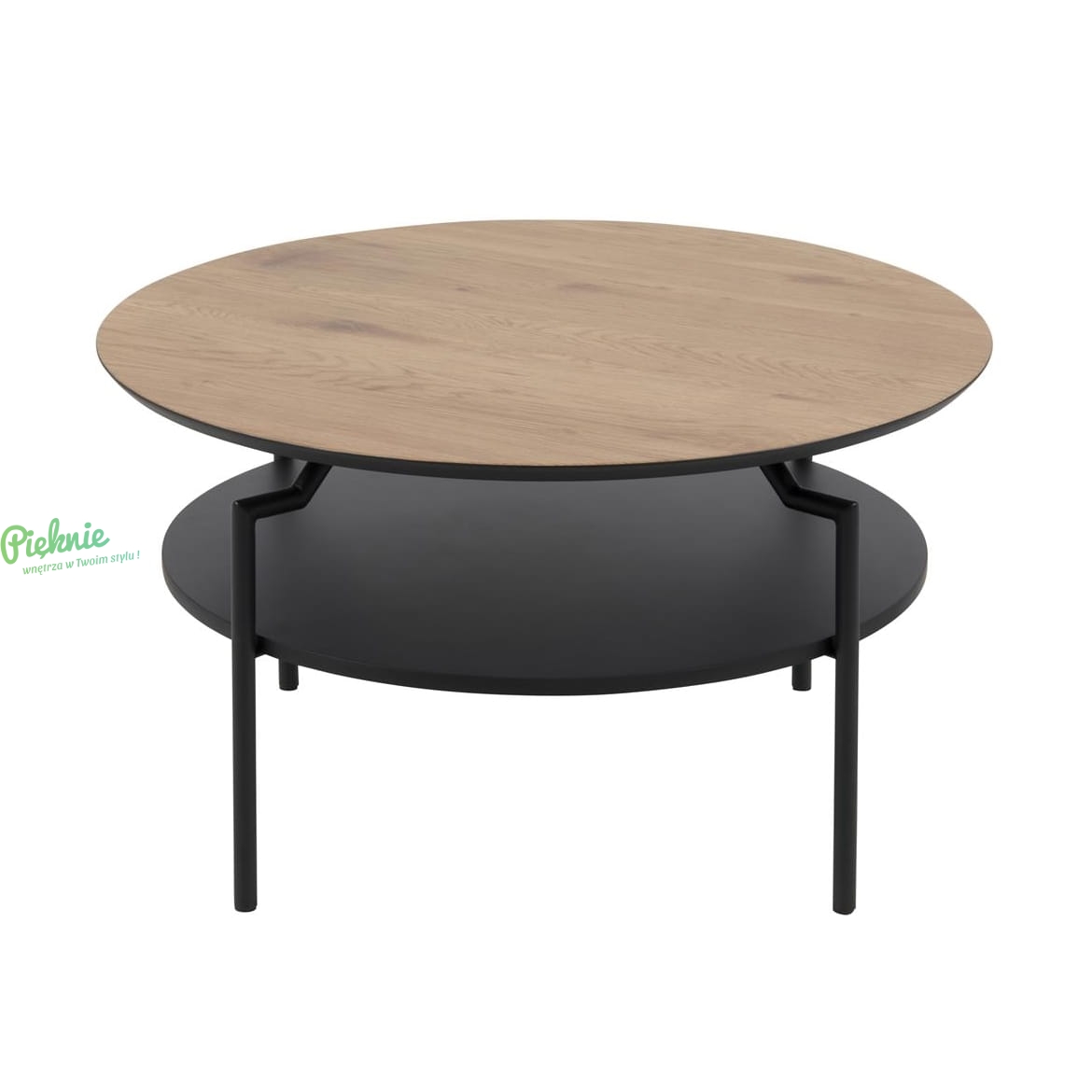 Okrągły stolik kawowy z półką.