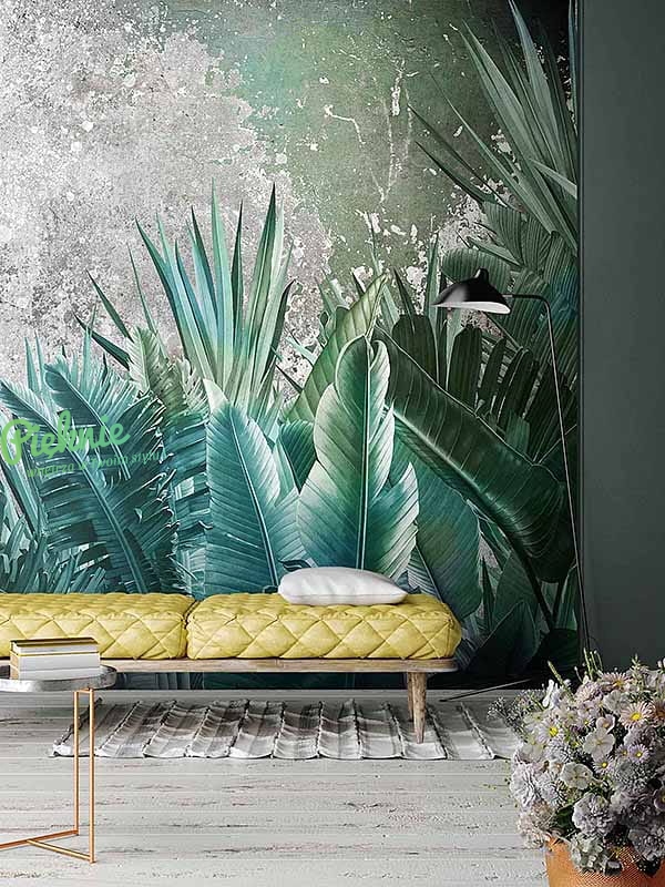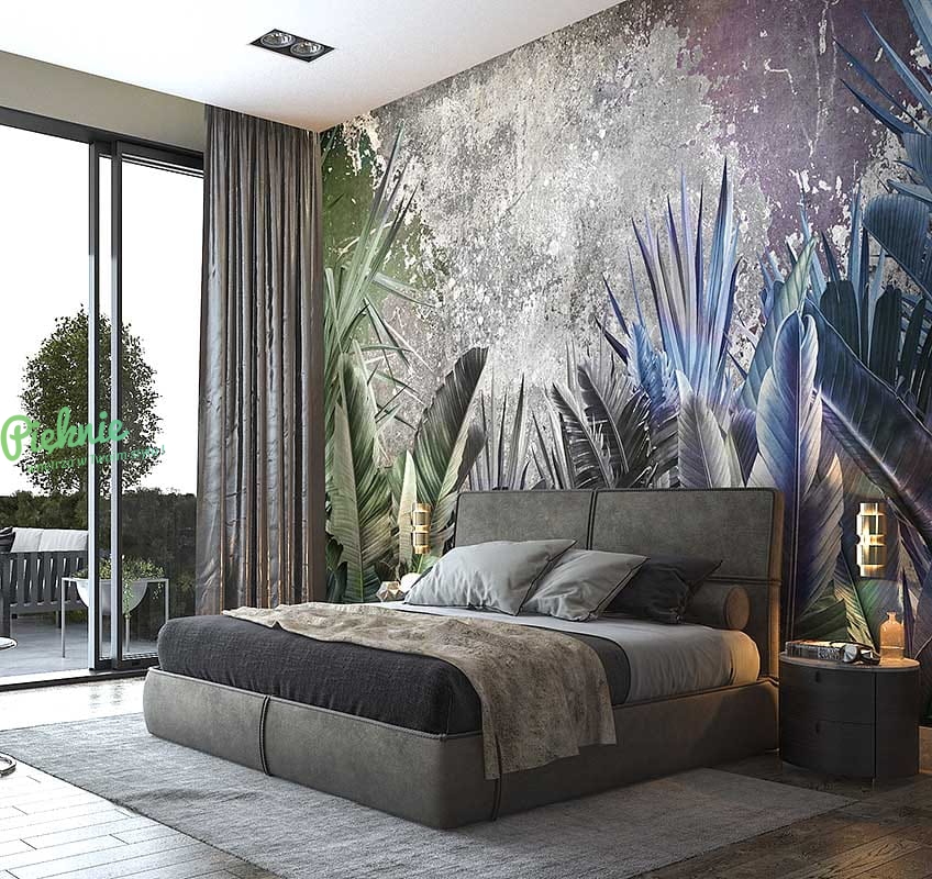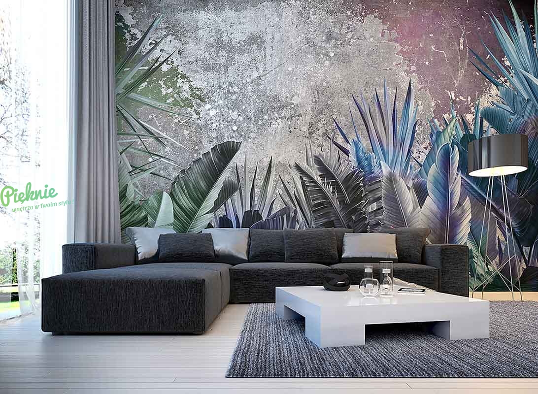 Oryginalna tapeta fizelinowa z motywem tropikalnych liści.