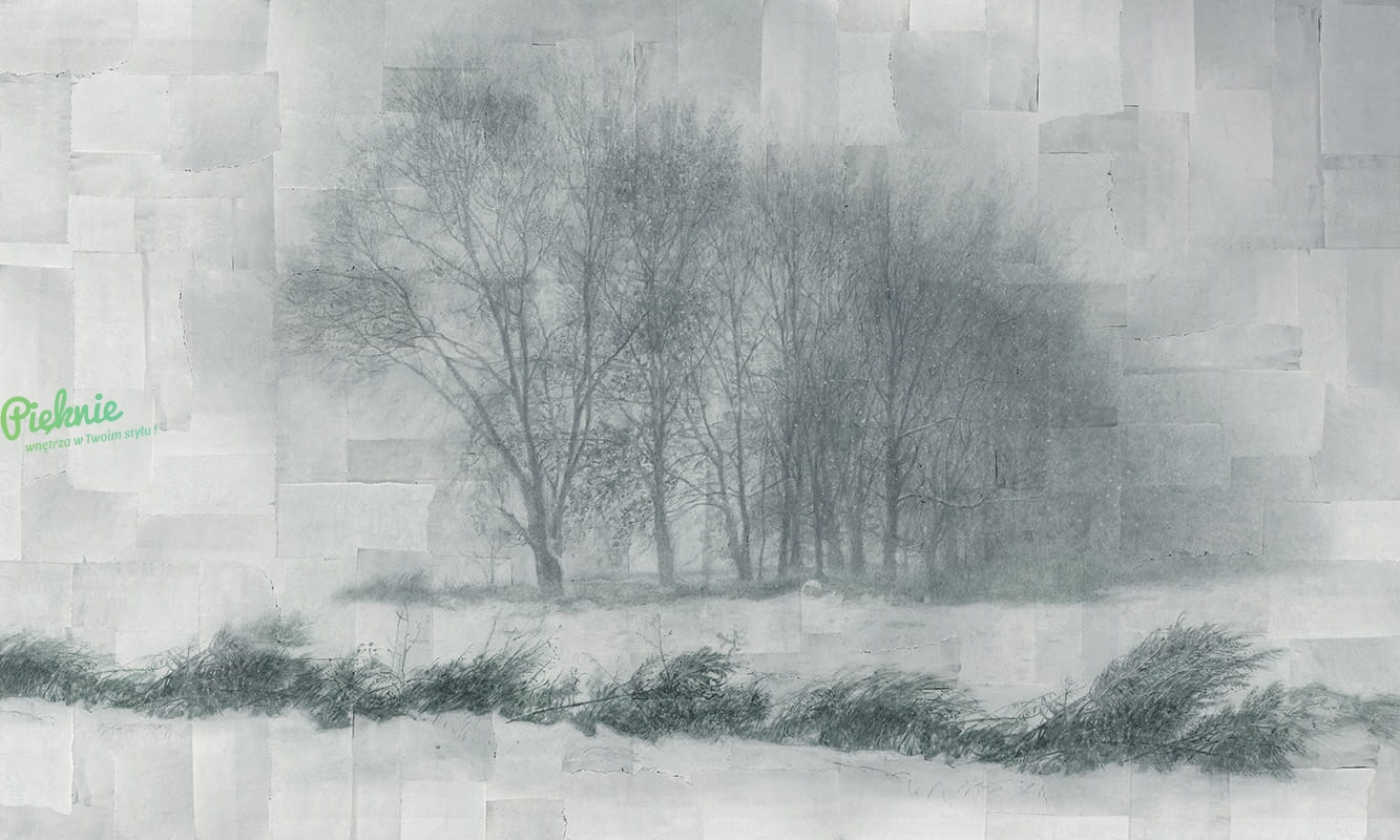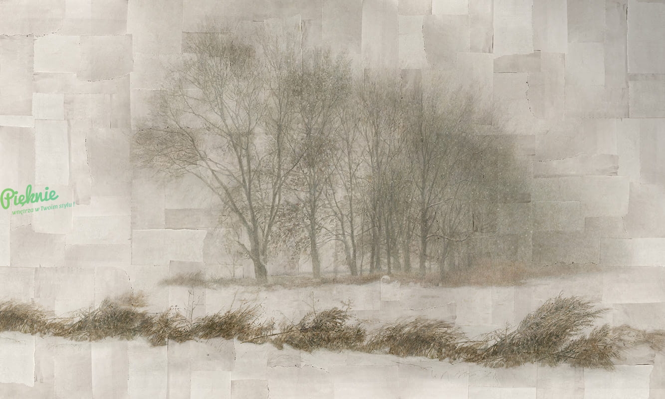 Pejzaż zimowy Nebbia drzewa i trawy w zaspach tapeta ścienna na fizelinie w nowoczesnym stylu
