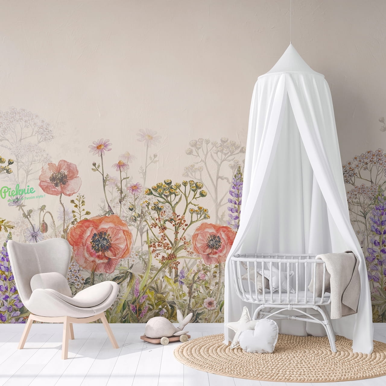 Tapeta na fizelinie z motywem kwiatowym.