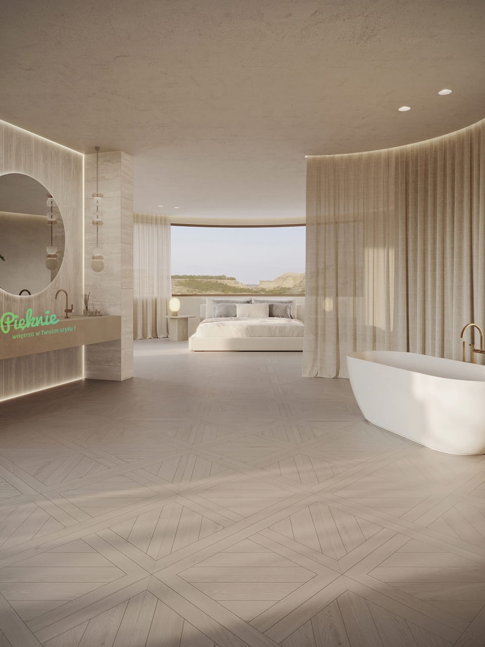 Dekoracyjne płytki ścienne Porcelanosa Roma imitujące marmur.