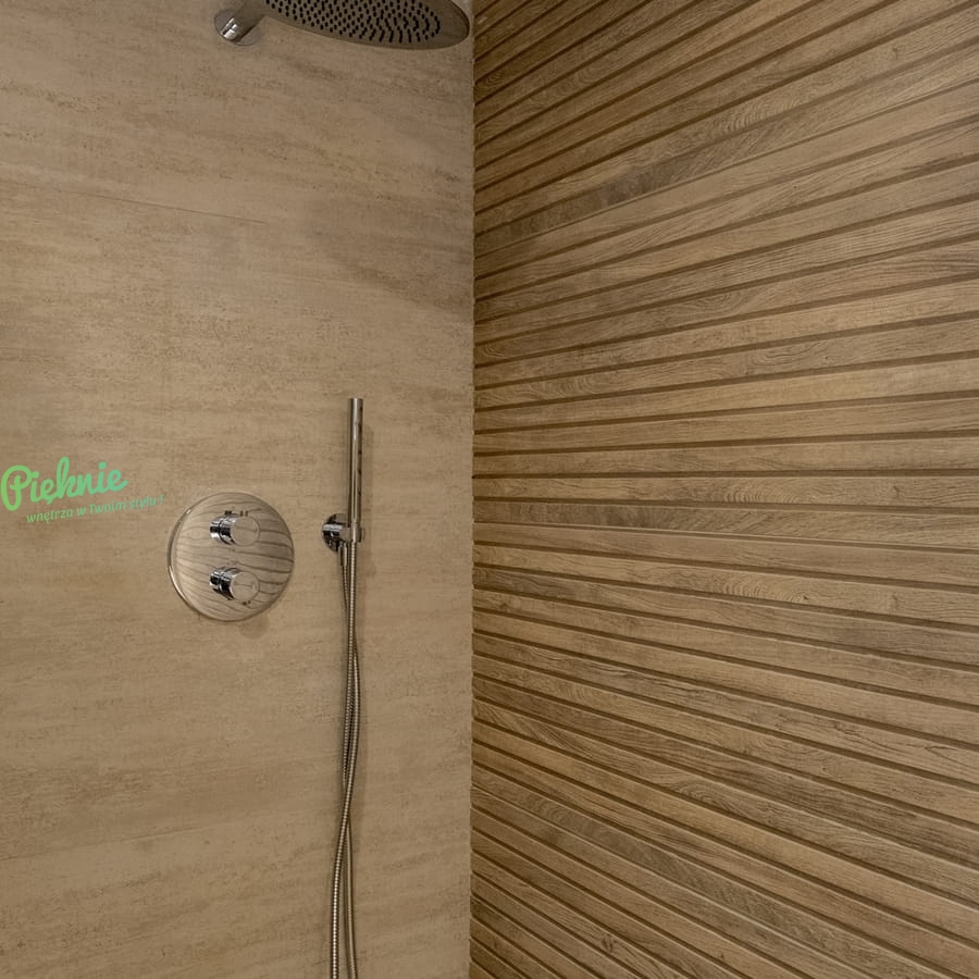 Dekoracyjne płytki w pasy Porcelanosa Lexington Cognac.
