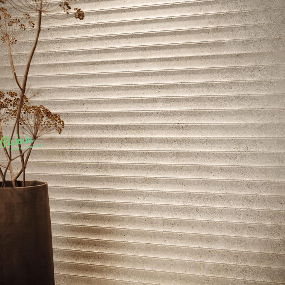 Dekoracyjne płytki ścienne Porcelanosa Lineal Verona 59,6x150cm z wzorem w pasy.