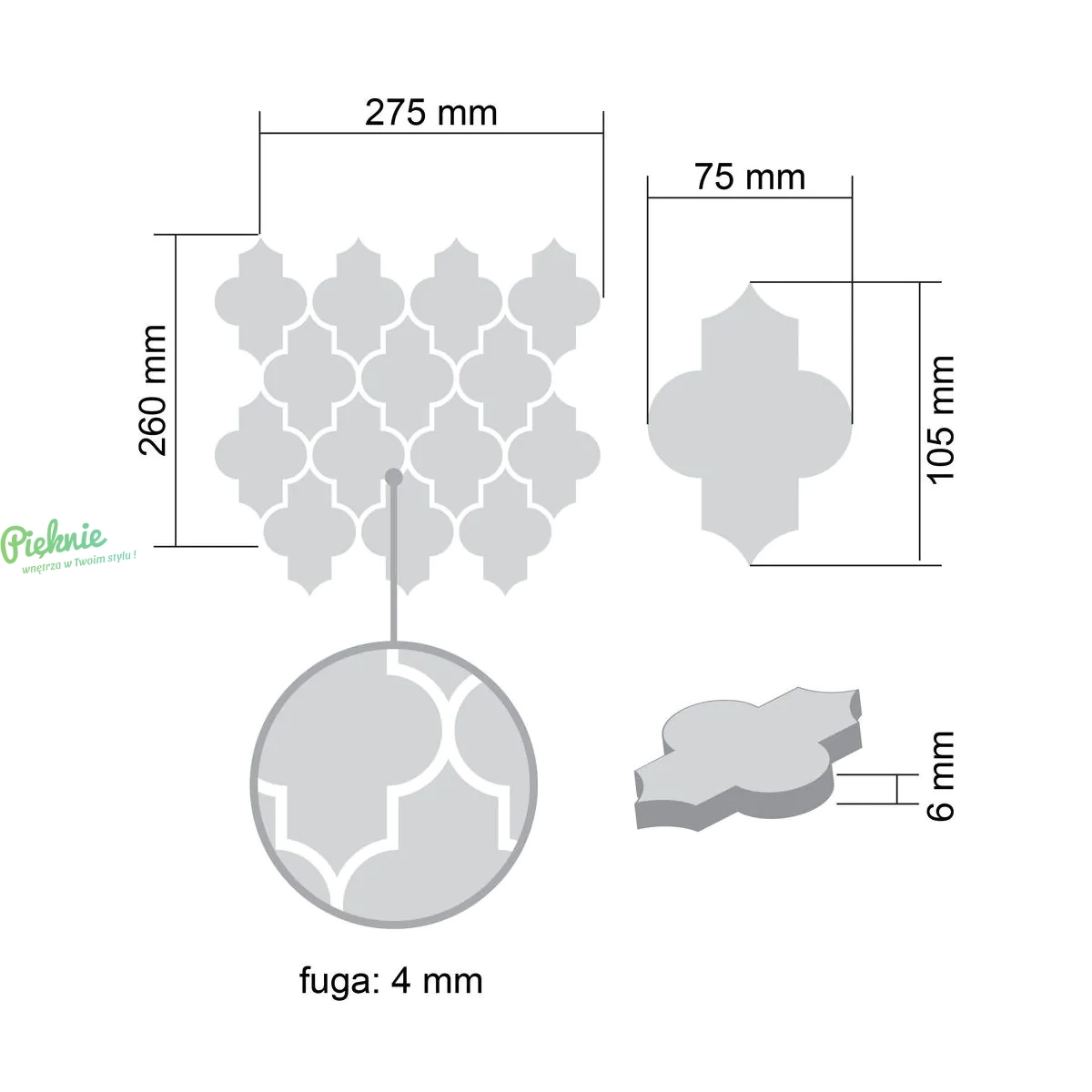 - Wymiar plastra 275 x 260mm (0.0715m2)