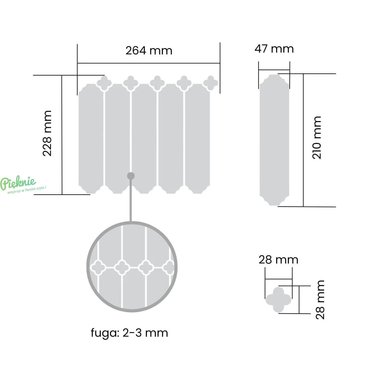 - Wymiar plastra 250 x 228 mm (0.06 m2)