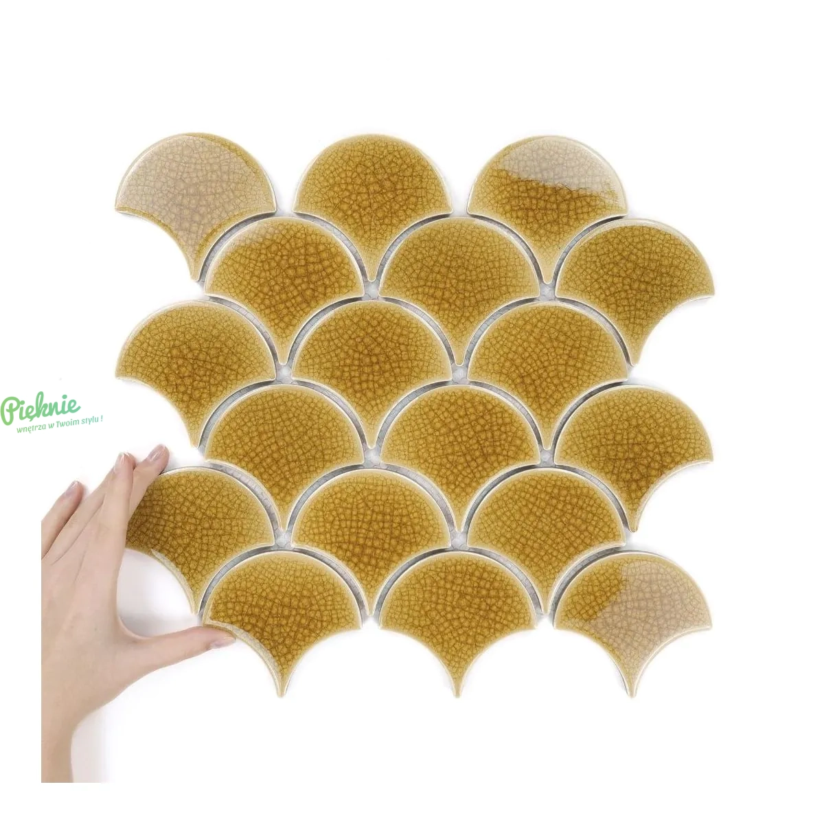Raw Decor Flabellum Amber Bursztynowa mozaika łuska połysk