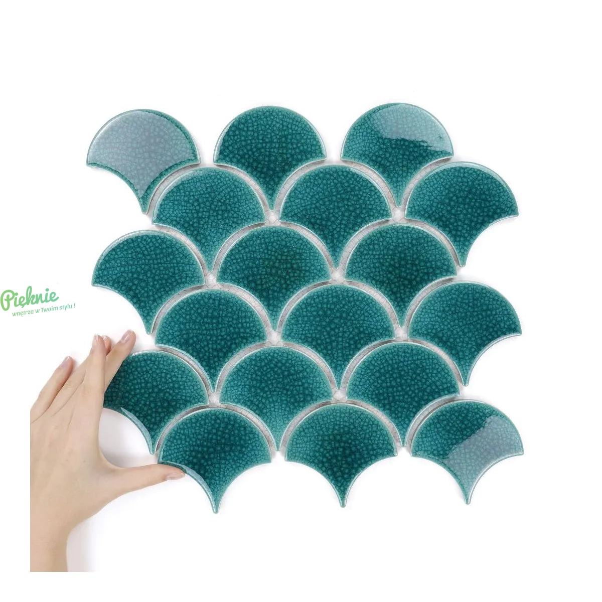 Raw Decor Flabellum Blue Lagoon morska mozaika łuska połysk