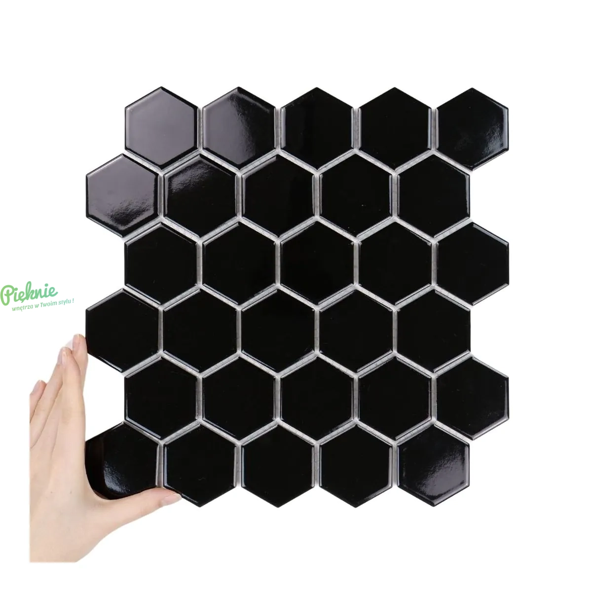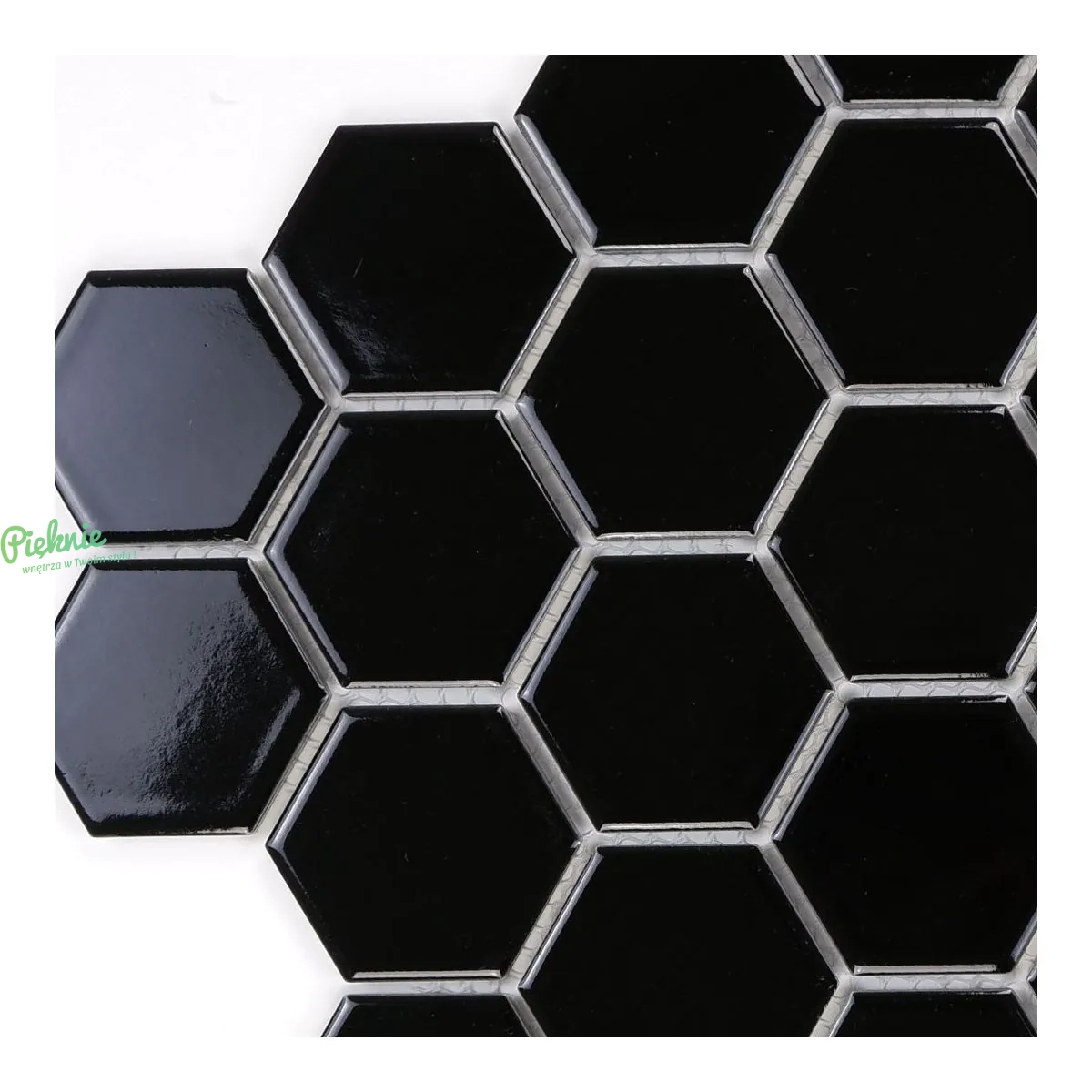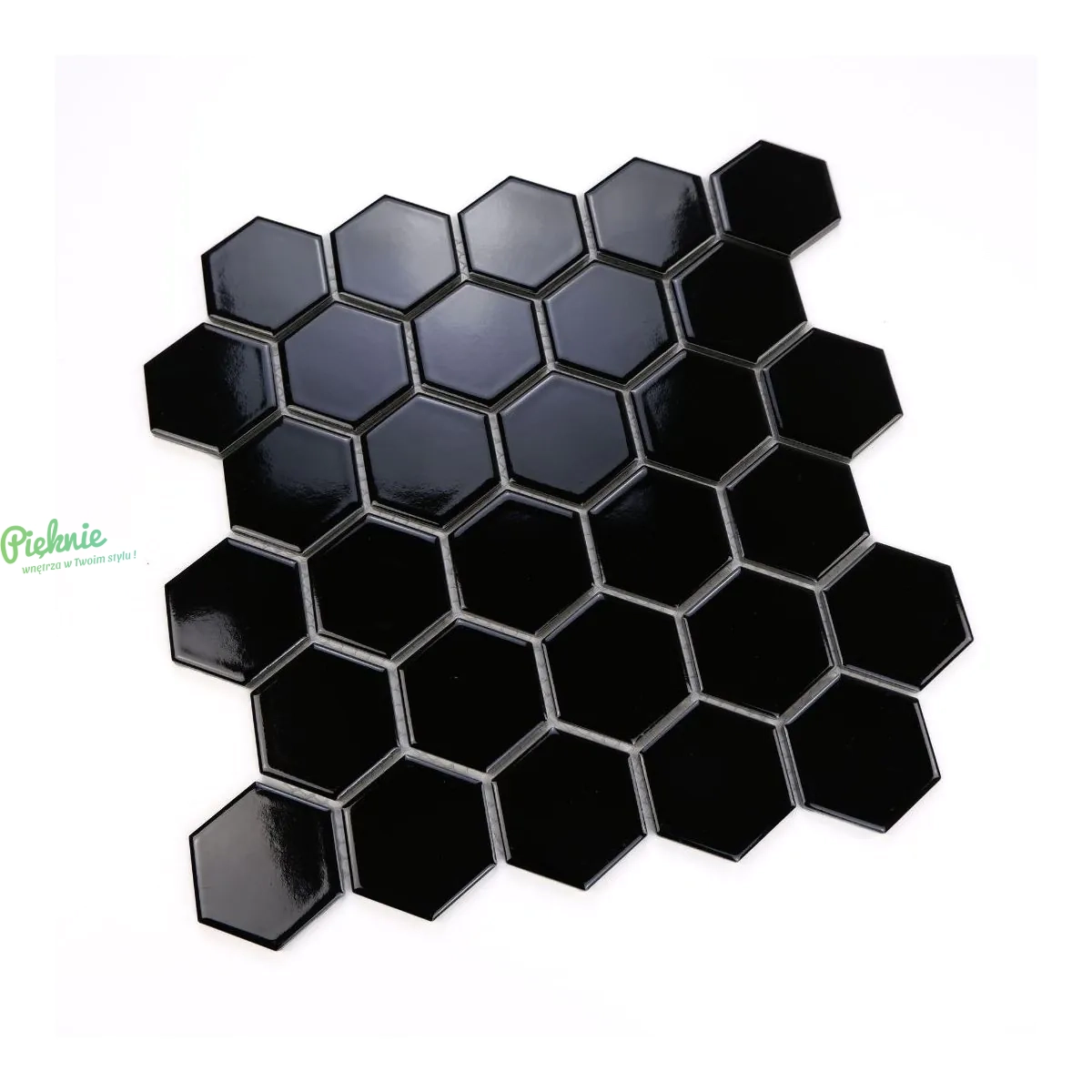 Raw Decor Heksagon Duży Czarny Połysk mozaika plastry miodu