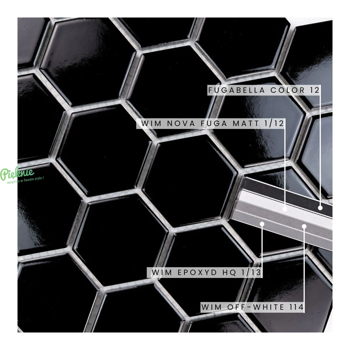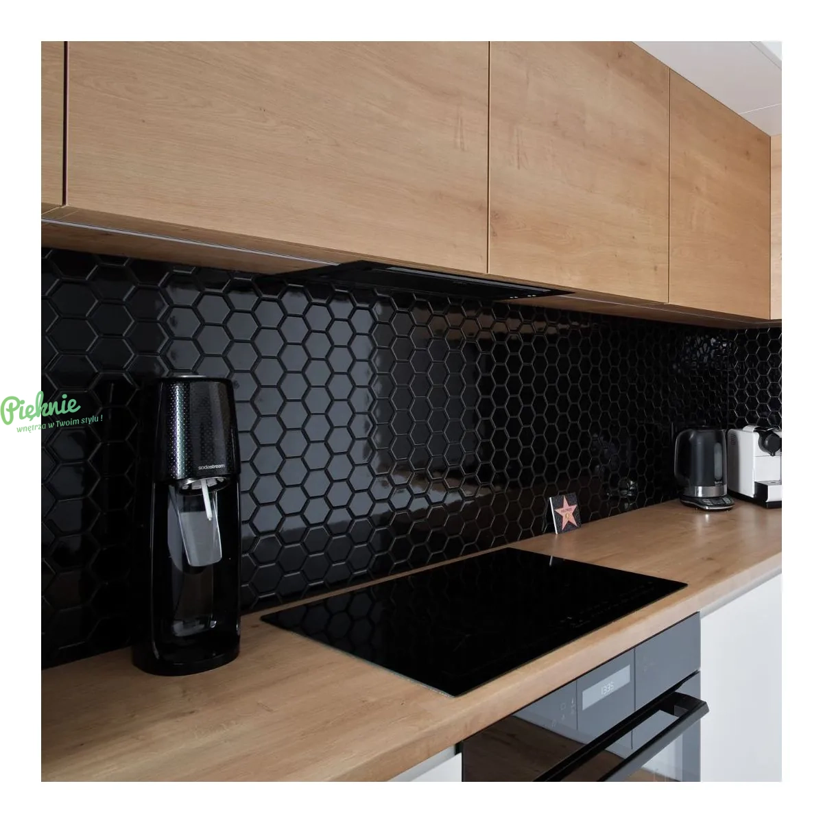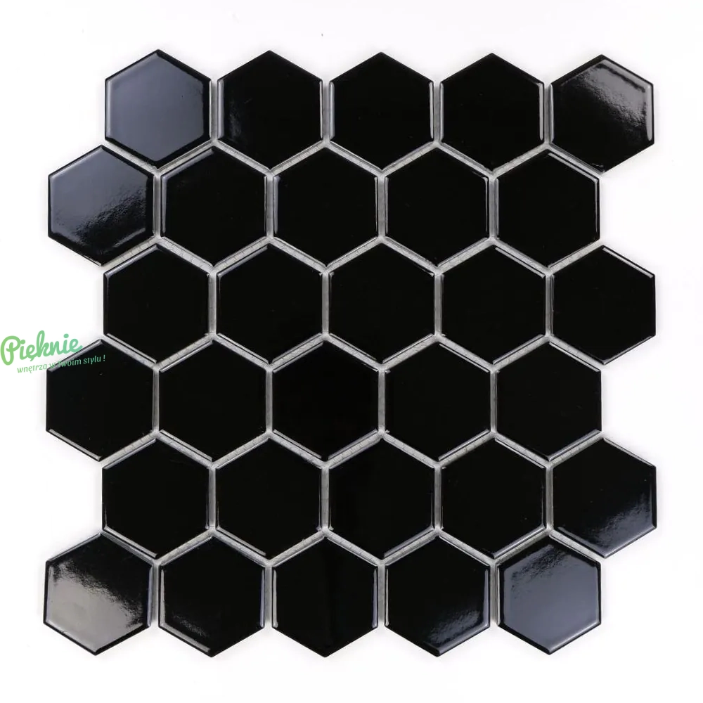 Raw Decor Heksagon Duży Czarny Połysk mozaika plastry miodu