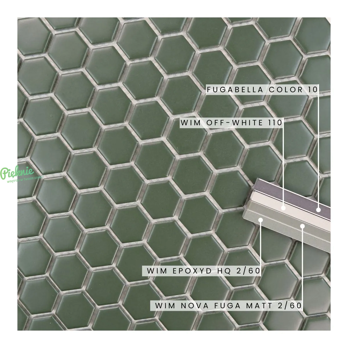 Raw Decor Heksagon Mały Ciemna Zieleń Matowy mozaika plastry miodu