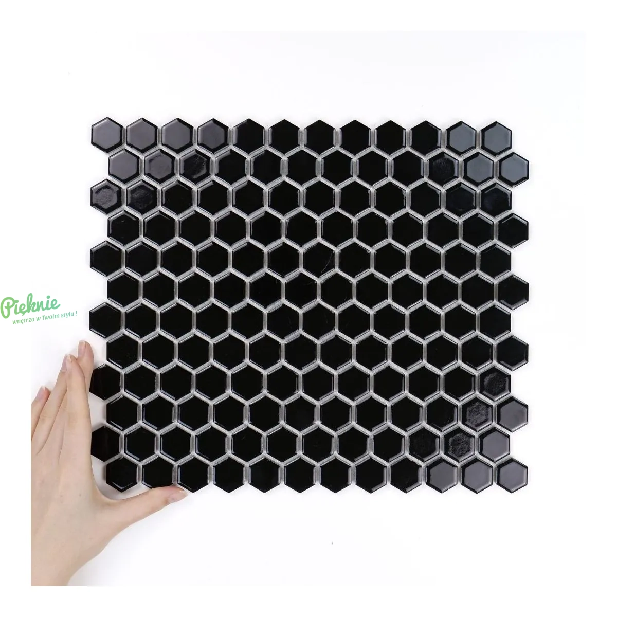Raw Decor Heksagon Mały Czarny Połysk mozaika plastry miodu