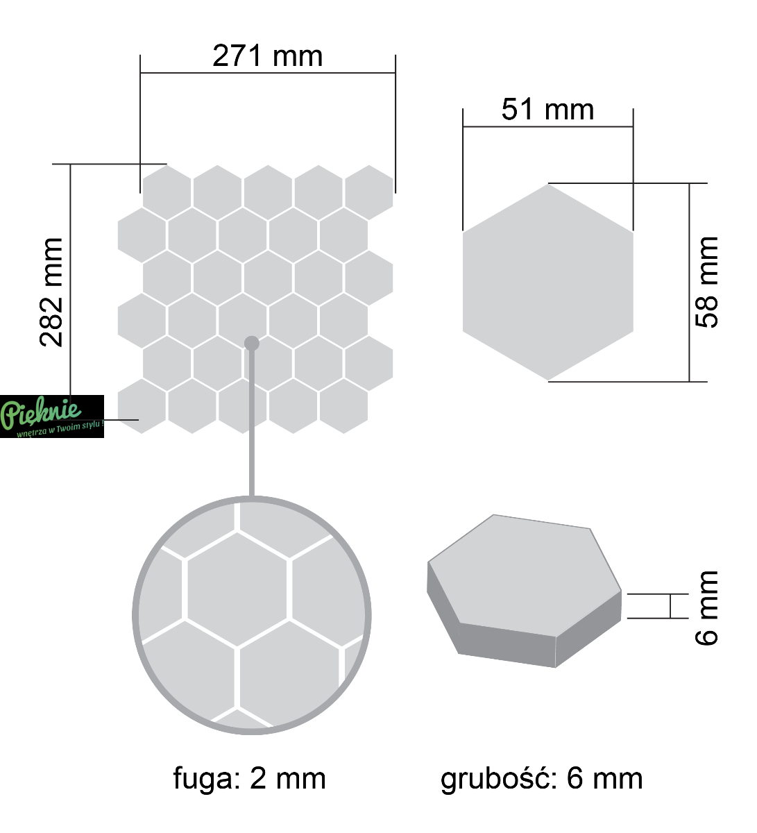 - Wymiar plastra 271 x 281mm (0.076m2)