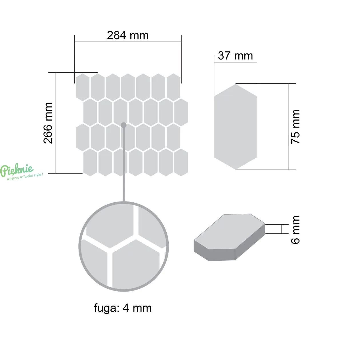 - Wymiar plastra 266 x 284mm (0.075m2)