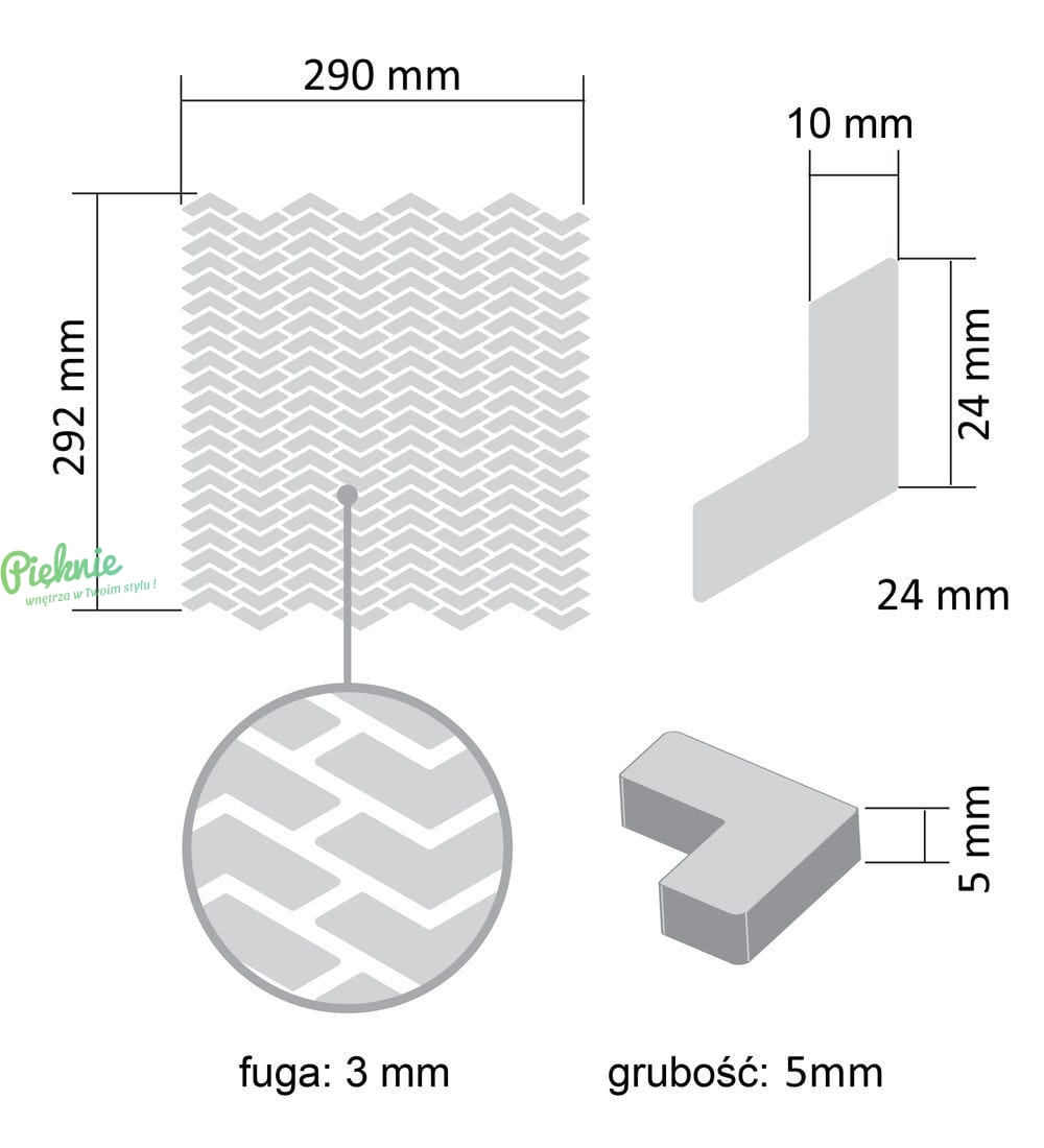 - Wymiar plastra 274 x 274mm (0.075m2)