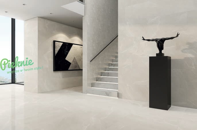Matowe płytki imitujące marmur marki Saloni z kolekcji Byblos.
