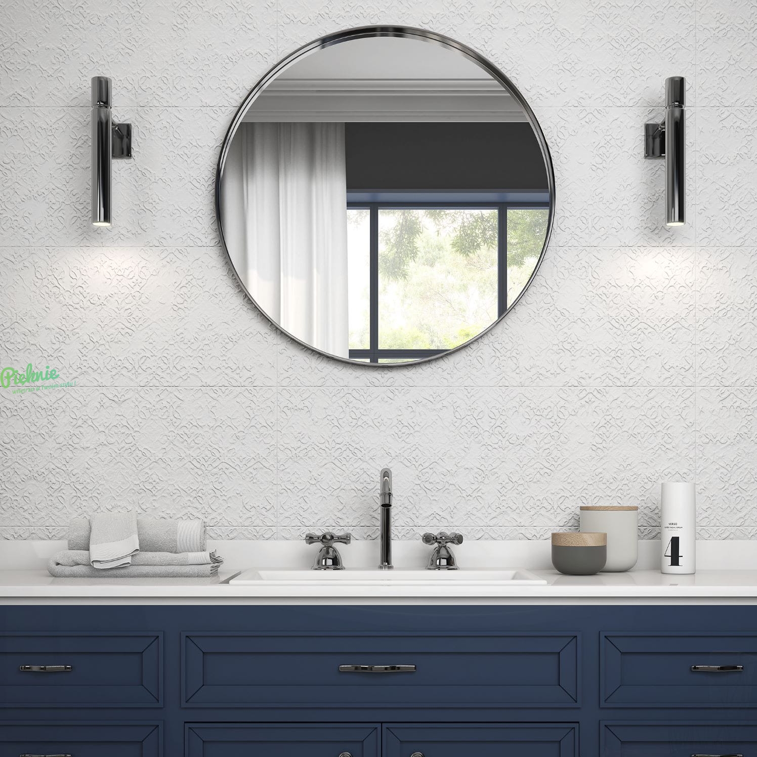 Dekoracyjne płytki ścienne Saloni Candle w białym kolorze, ozdobione delikatnym strukturalnym ornamentem.