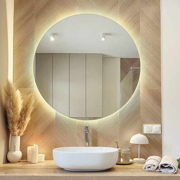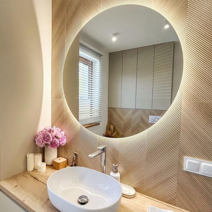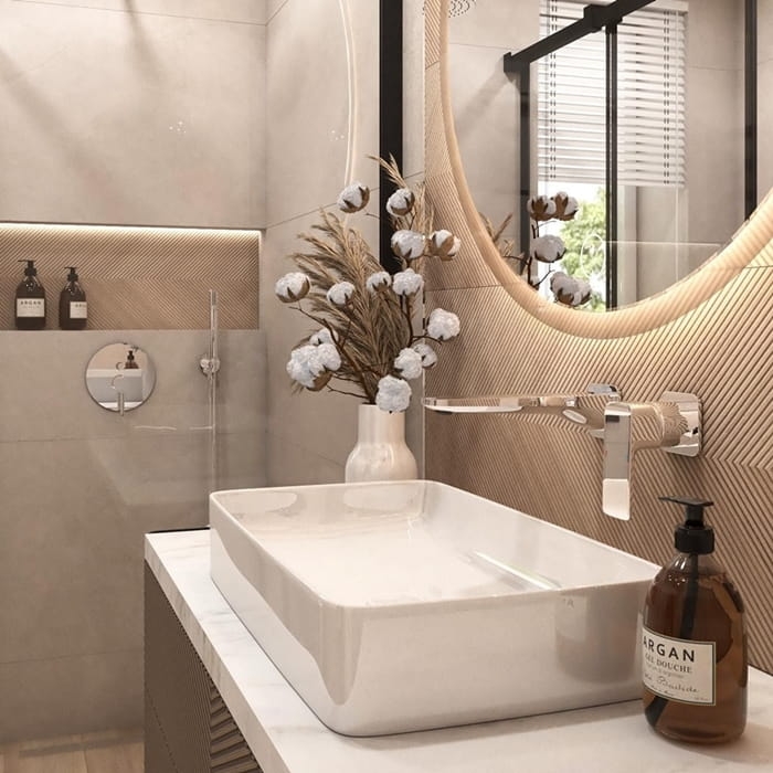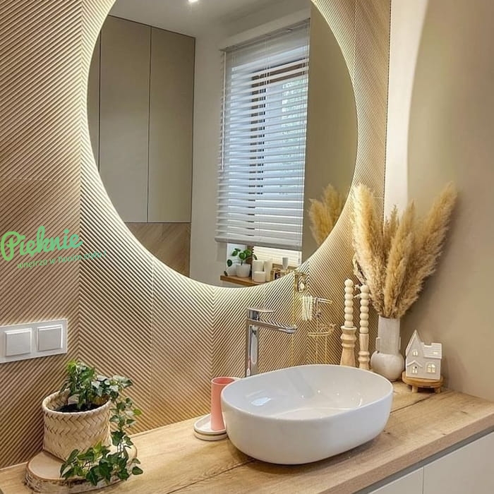 Dekoracyjne płytki ścienne marki Saloni imitujące naturalne drewno. Delikatnie ryflowane, idealnie sprawdzą się jako ozdoba łazienki oraz kuchni.