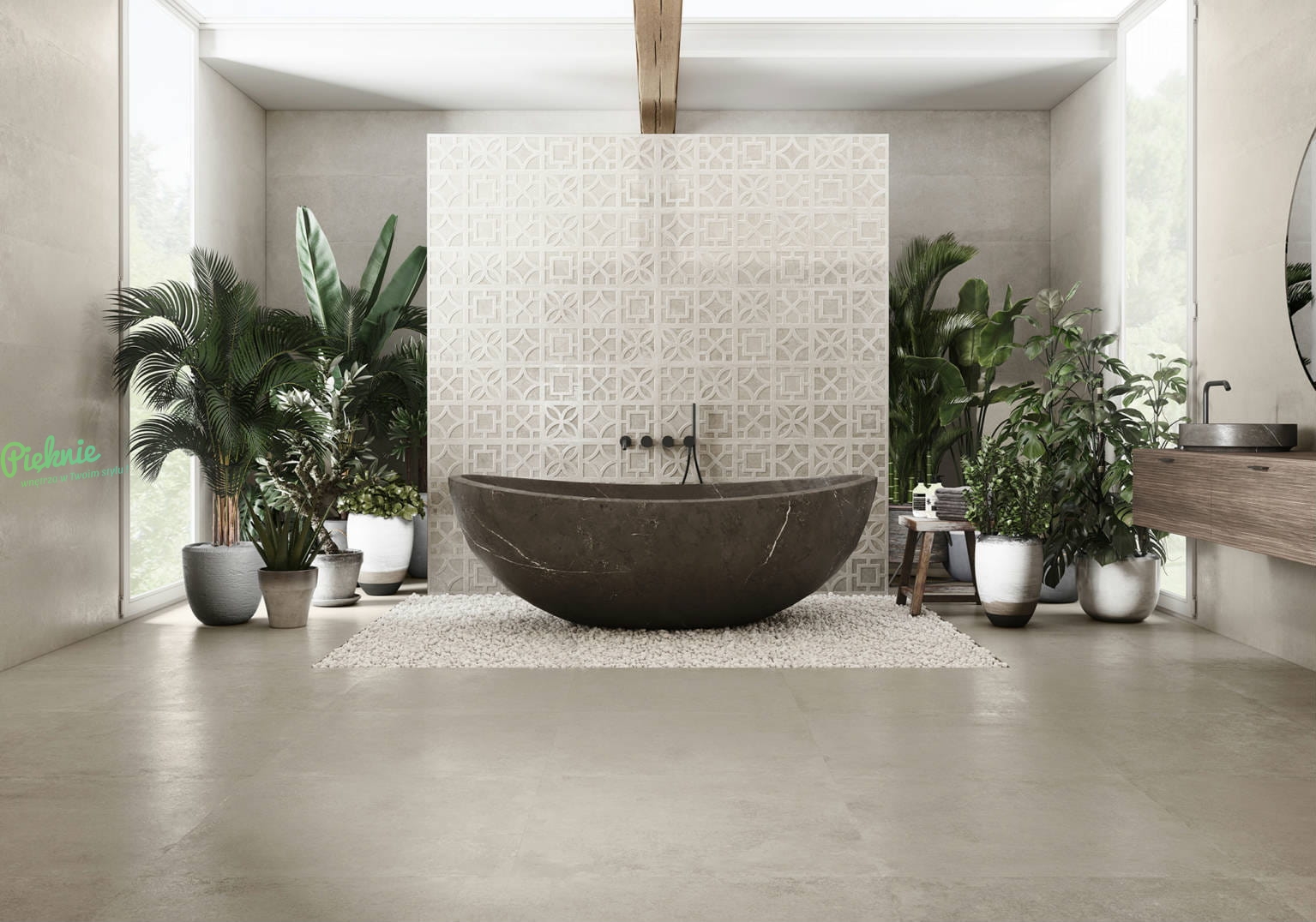 Płytki marki Saloni z kolekcji Rockwell imitujące kamień.
