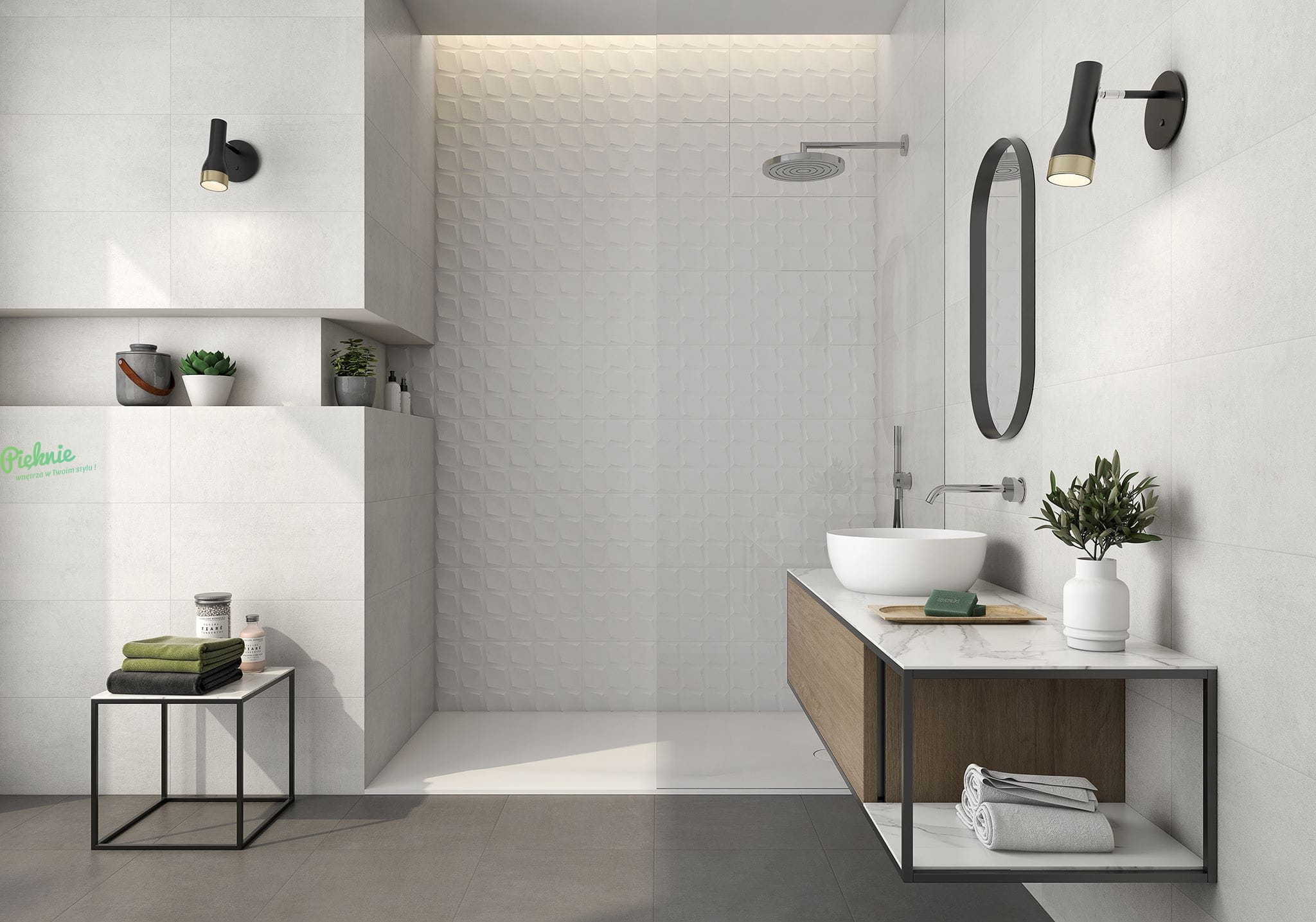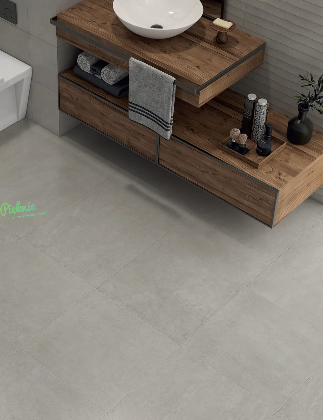 Płytki podłogowe marki Saloni z kolekcji Sunset, imitacja betonu.