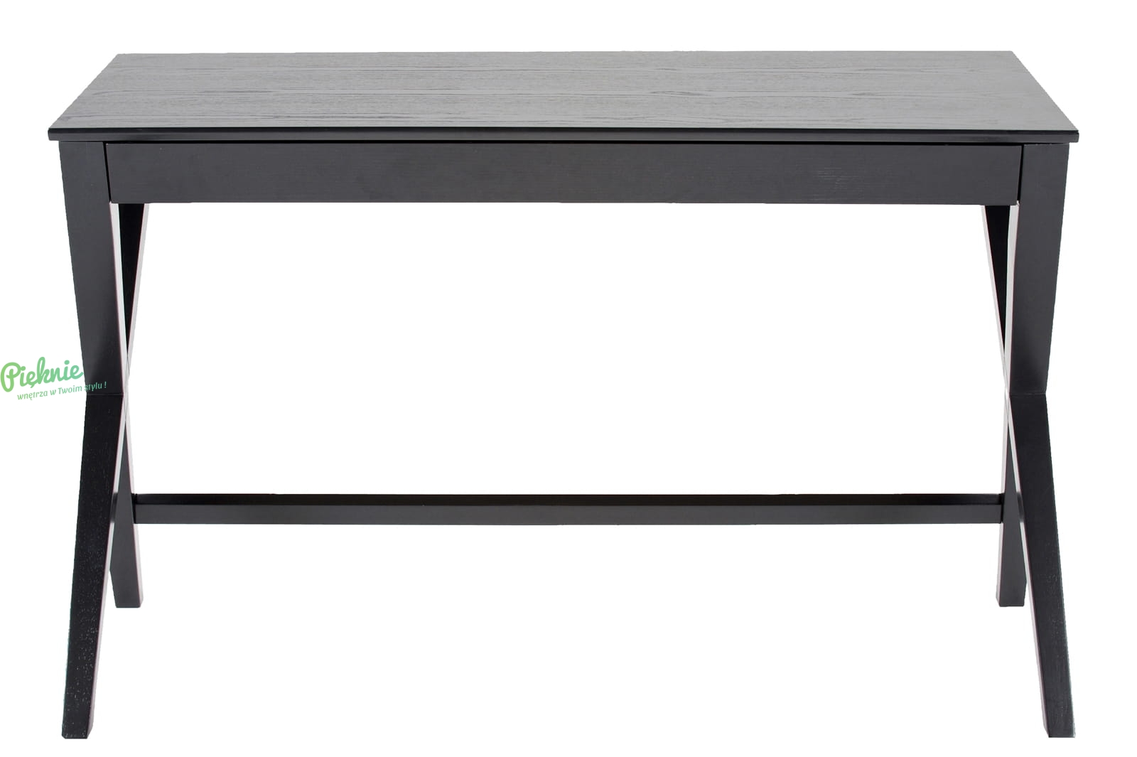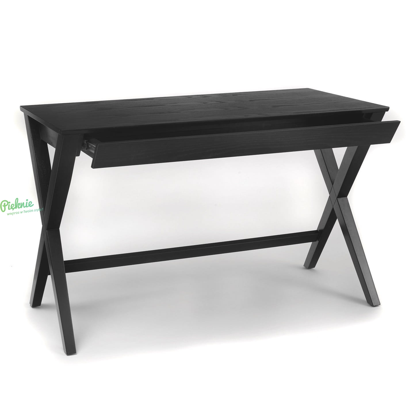 Czarne, eleganckie biurko w skandynawskim stylu. Solidne, doskonale sprawdzi się w biurze, gabinecie i pokoju nastolatka. Posiada ukrytą, pojemną szufladę (na prowadnicach).