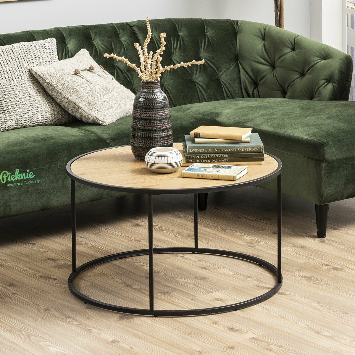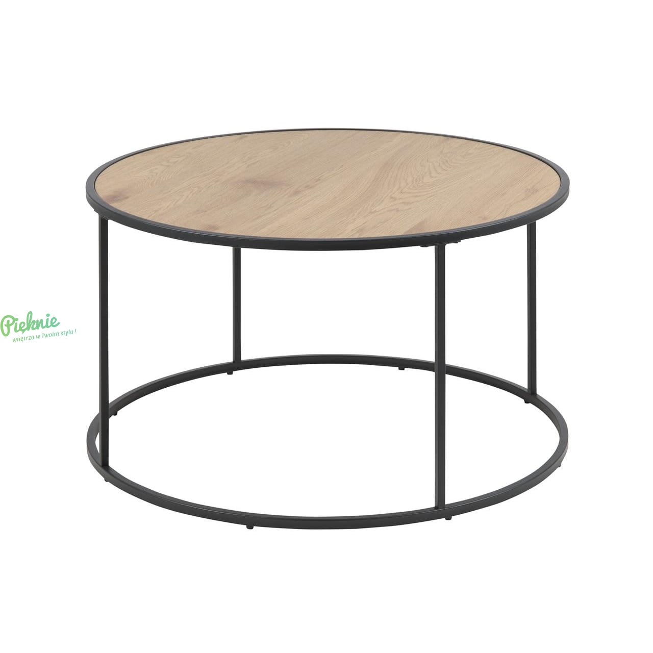 Scandi Loft Wild Oak minimalistyczny stolik kawowy Ø:80cm metalowa rama