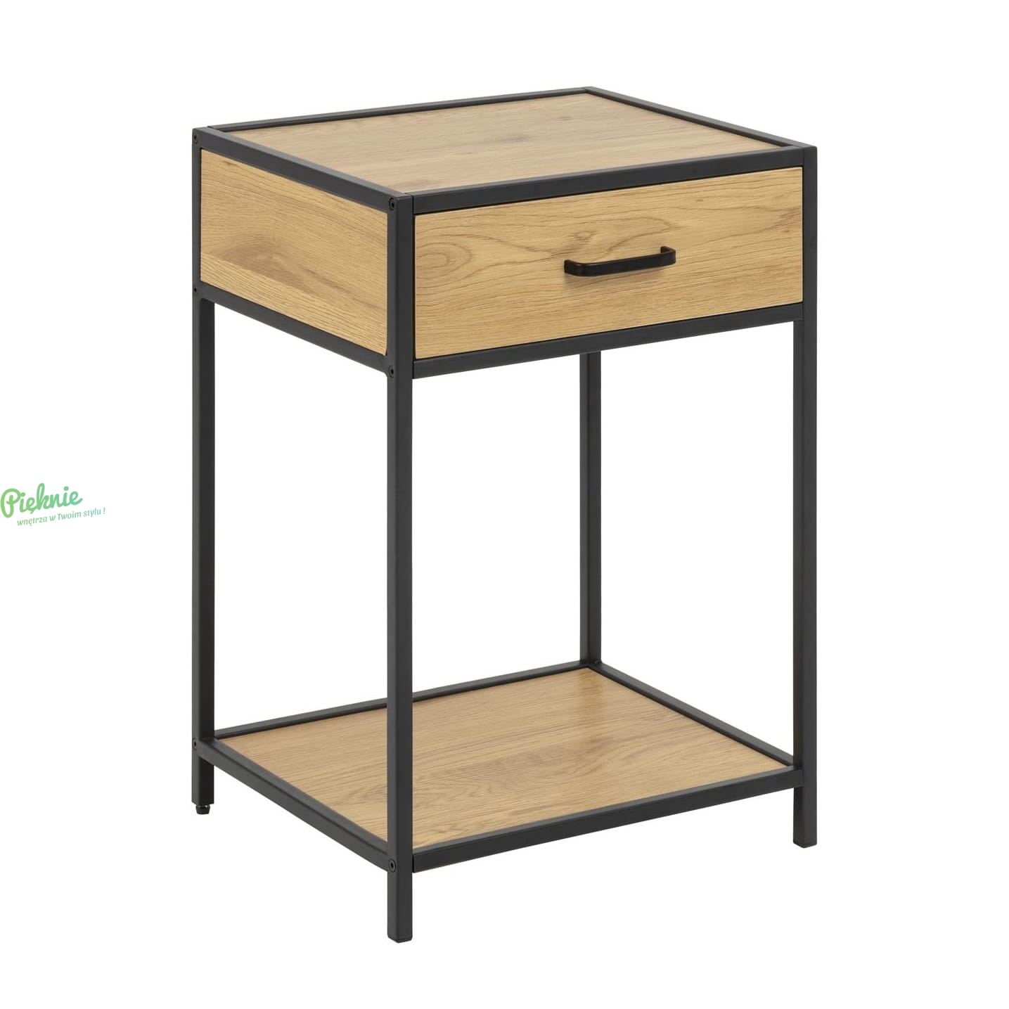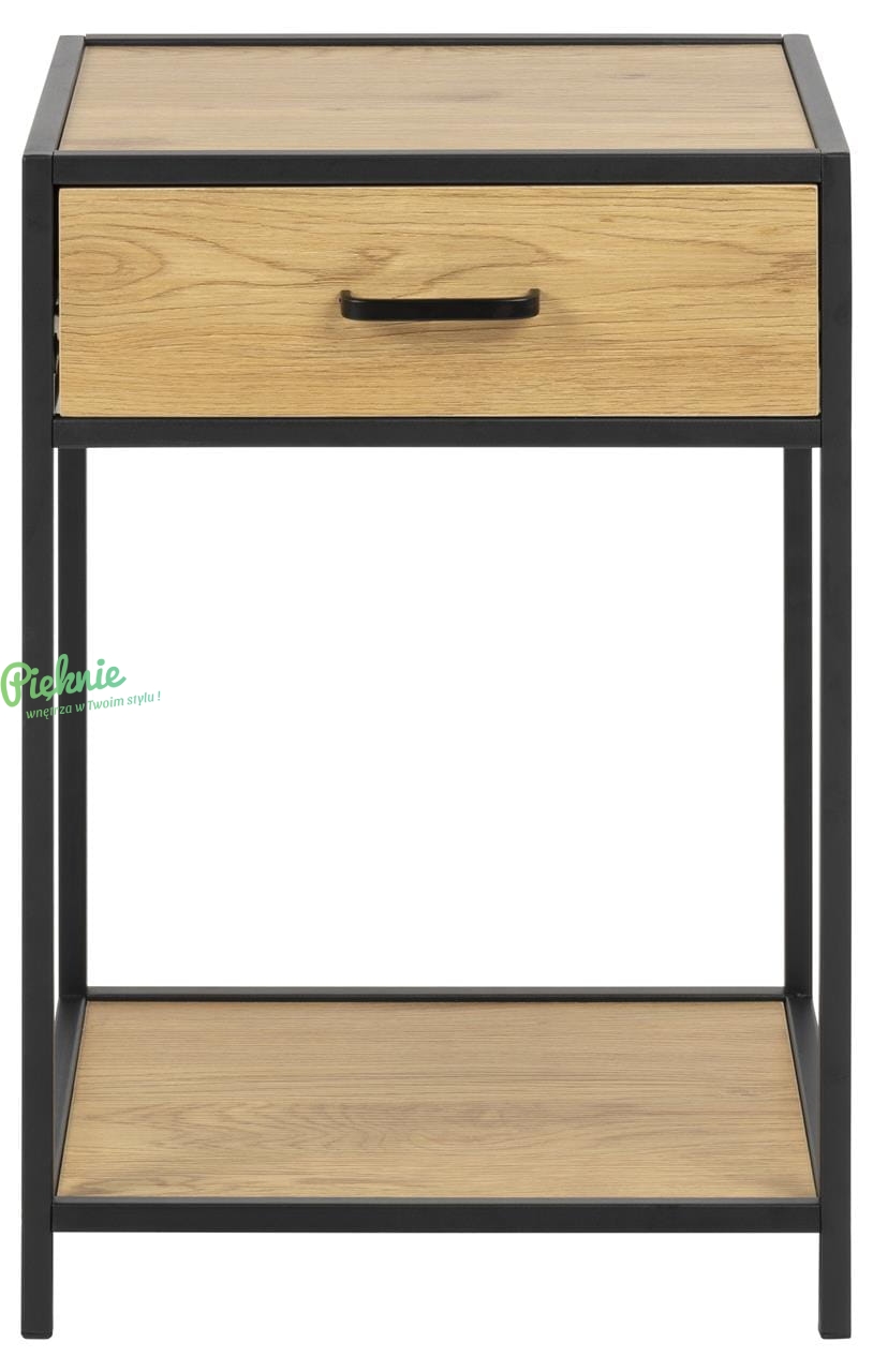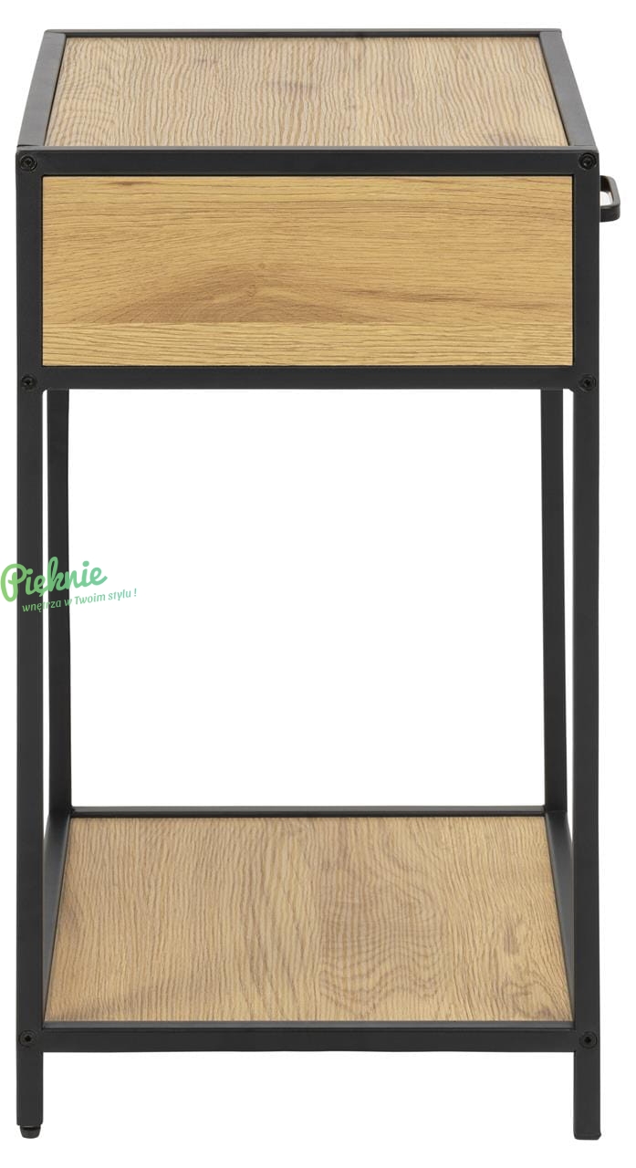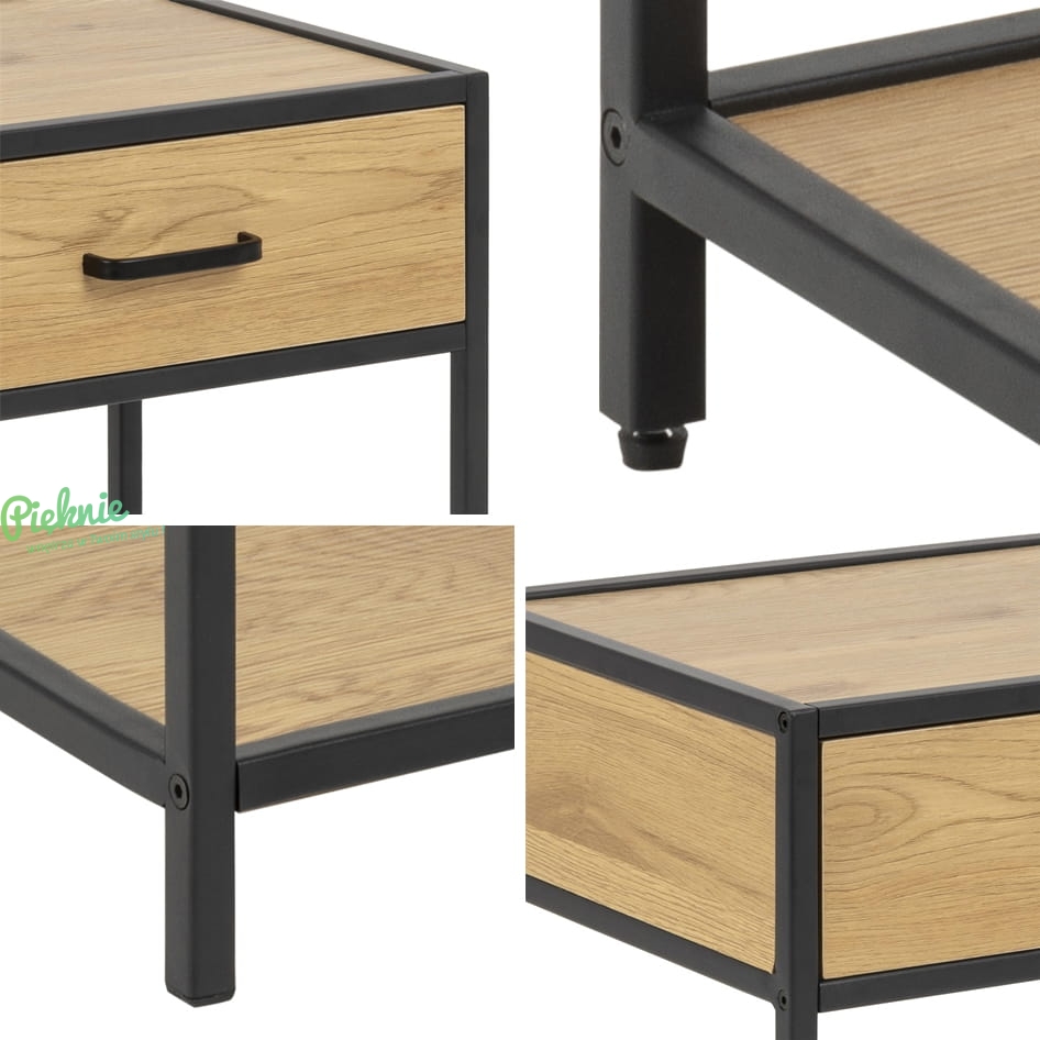 Nowoczesny stolik nocny Scandi Loft Wild Oak w kolorze dzikiego dębu i czerni, prezentuje się niezwykle lekko i elegancko. Minimalistyczny design sprawia, że pasuje do każdego wnętrza. Idealnie komponuje się z innymi produktami z tej serii.