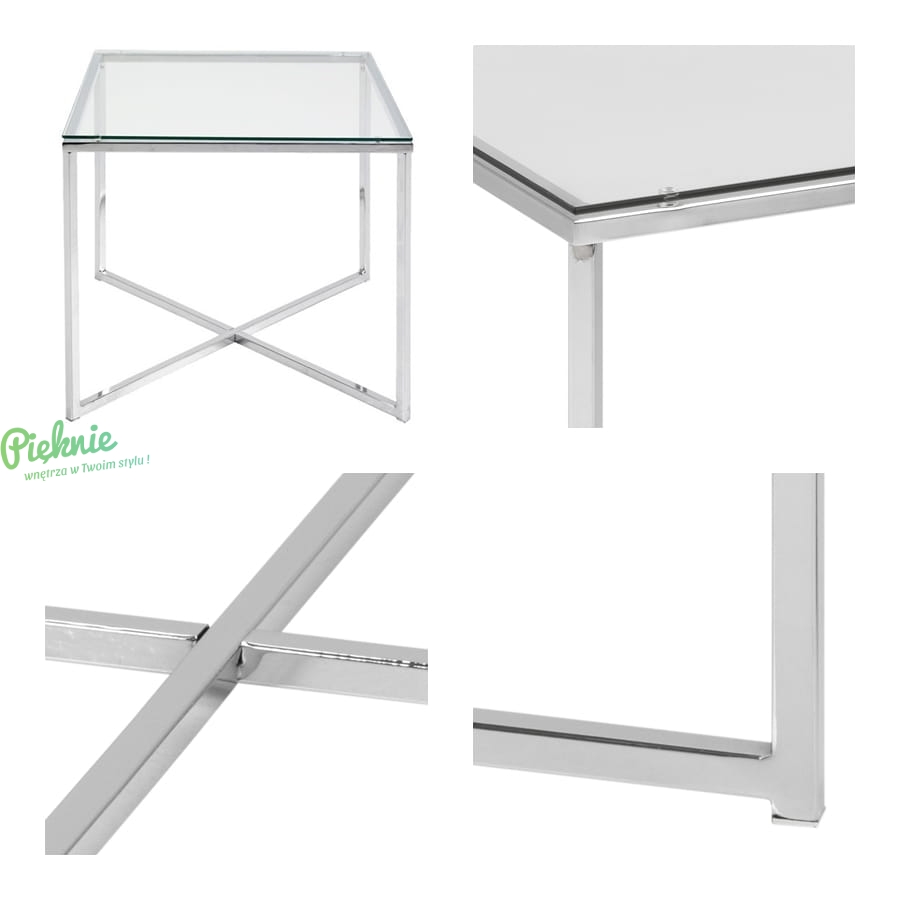 Stolik kawowy Kross nowoczesny design ze szklanym blatem 50x50 chrom