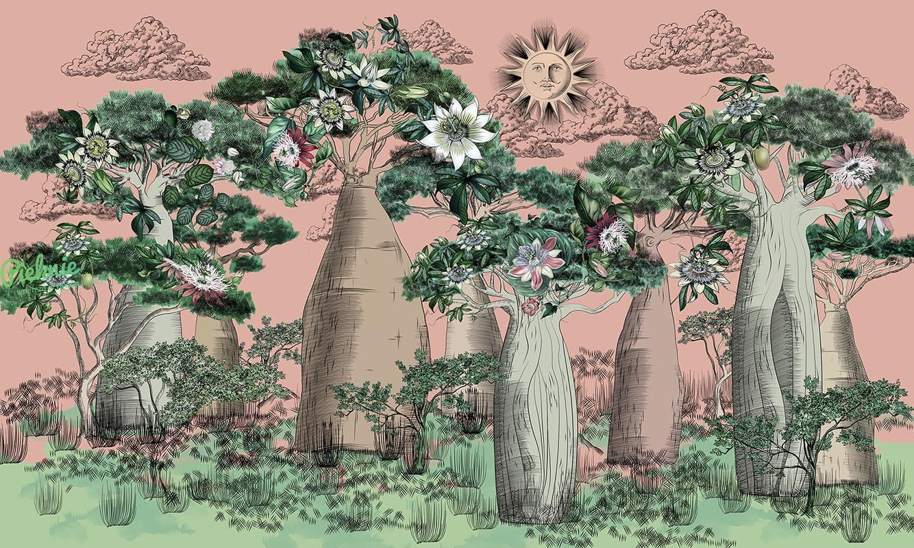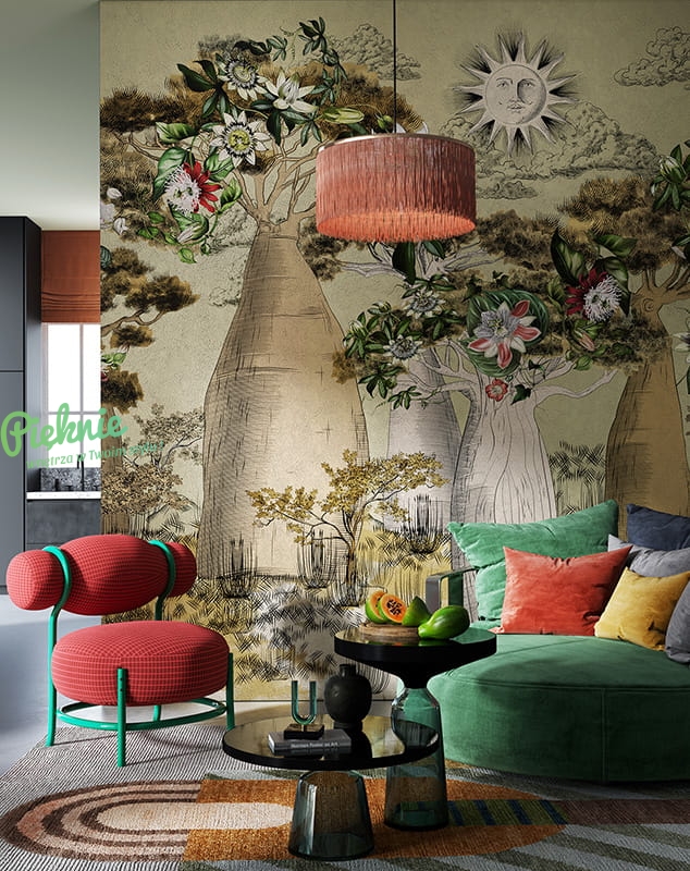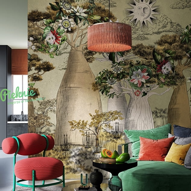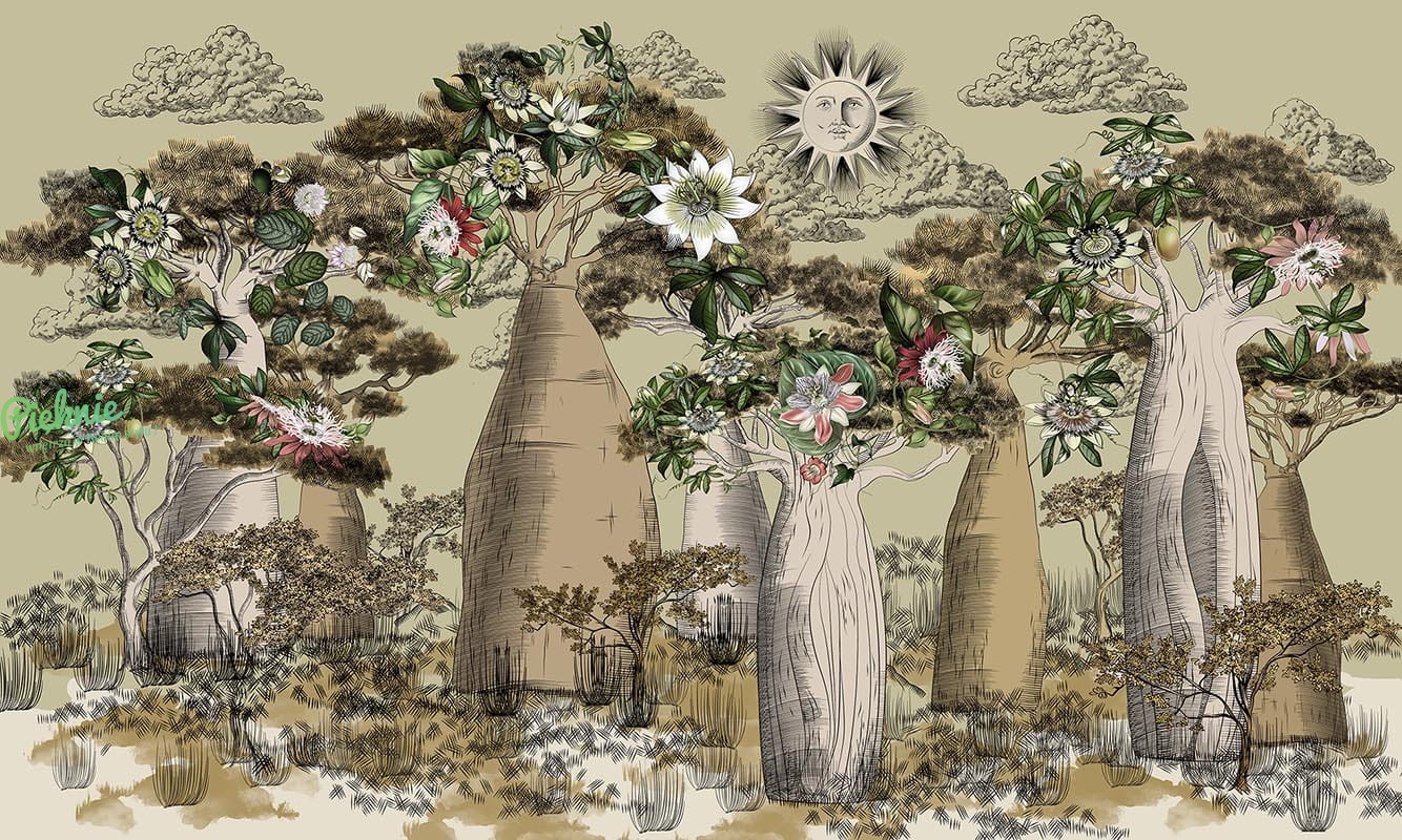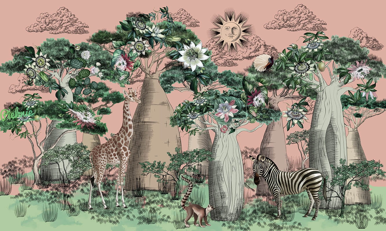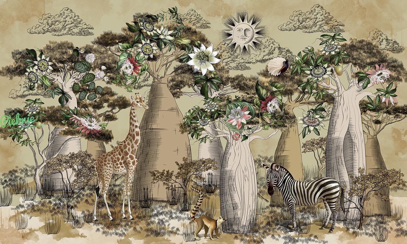 Tapeta ścienna z motywem sawanny.