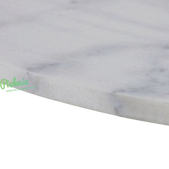 Blat wykonany z naturalnego marmuru o biało-szarym wybarwieniu z możliwymi żółtawymi wtrąceniami, osadzony na solidnej, metalowej podstawie malowanej na biały, matowy kolor. Stół Tarry Marble sprawdzi się w kuchni oraz jadalni urządzonej w stylu klasycznym lub nowoczesnym.