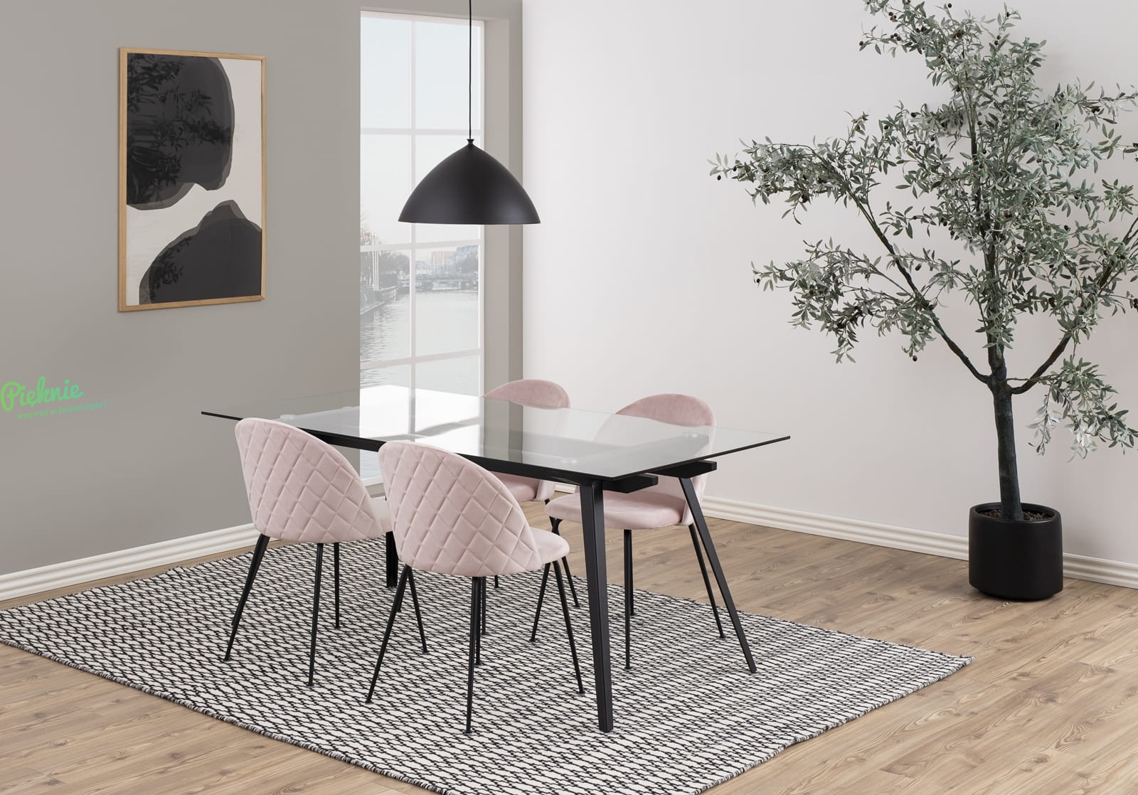 Stół do jadalni Tina Dining Table ze szklanym blatem.