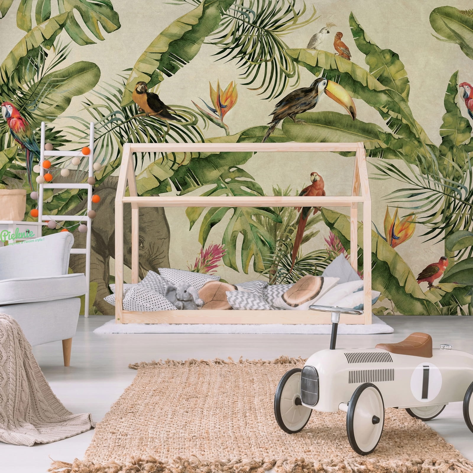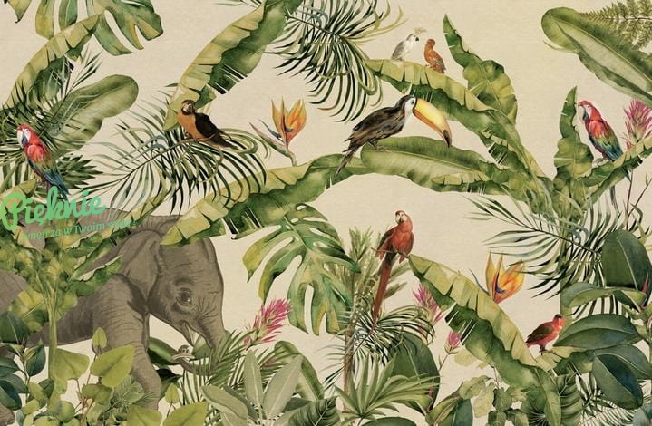 Tropikalna dżungla i papugi Jungle fototapeta do pokoju dziecięcego lub salonu - na wymiar