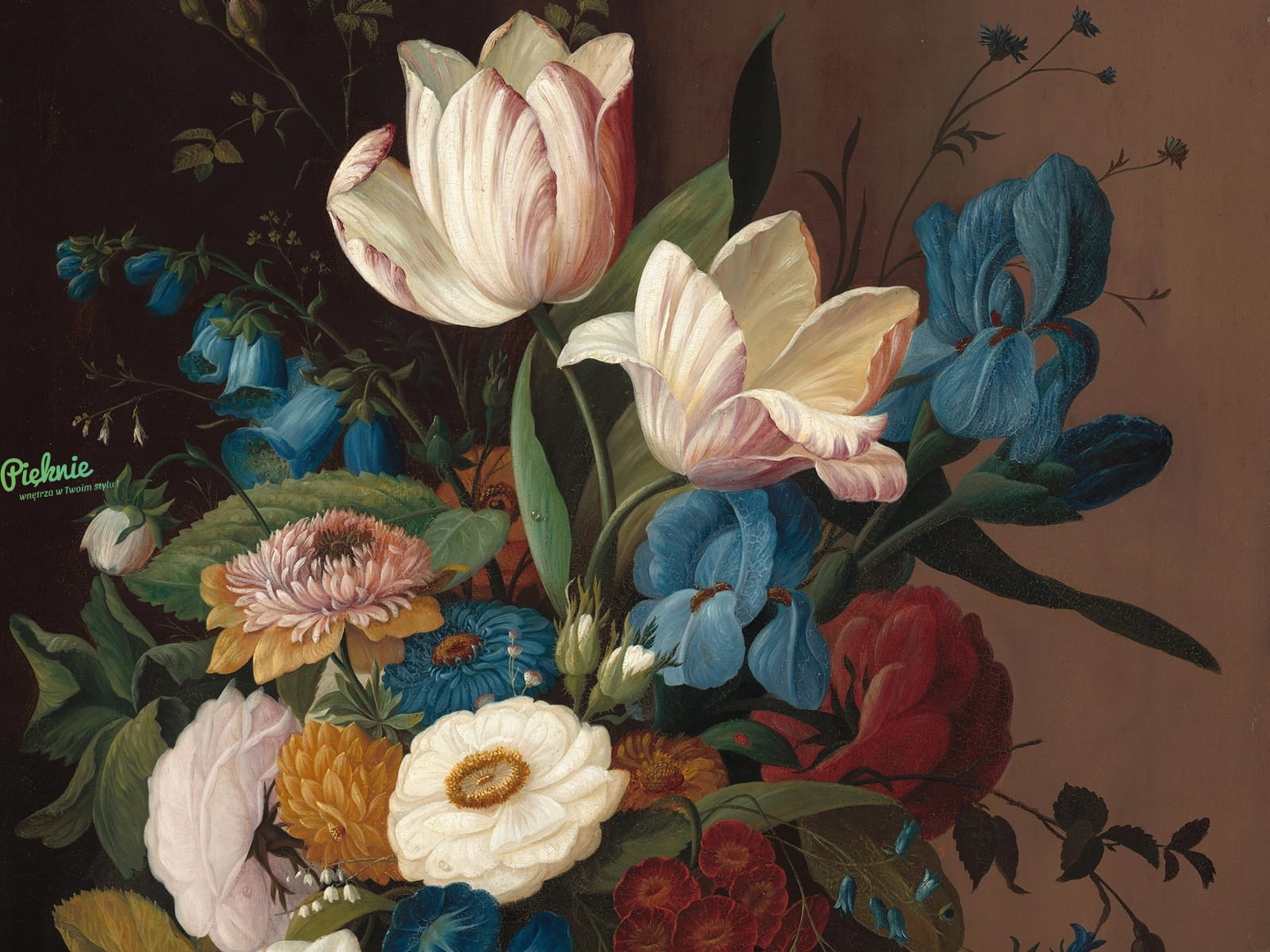 Fototapeta na fizelinie z motywem malowanych kwiatów.