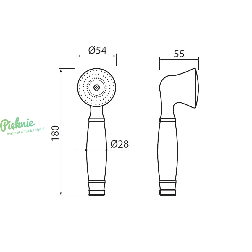 - słuchawka natryskowa 1-strumieniowa: mosiądz
