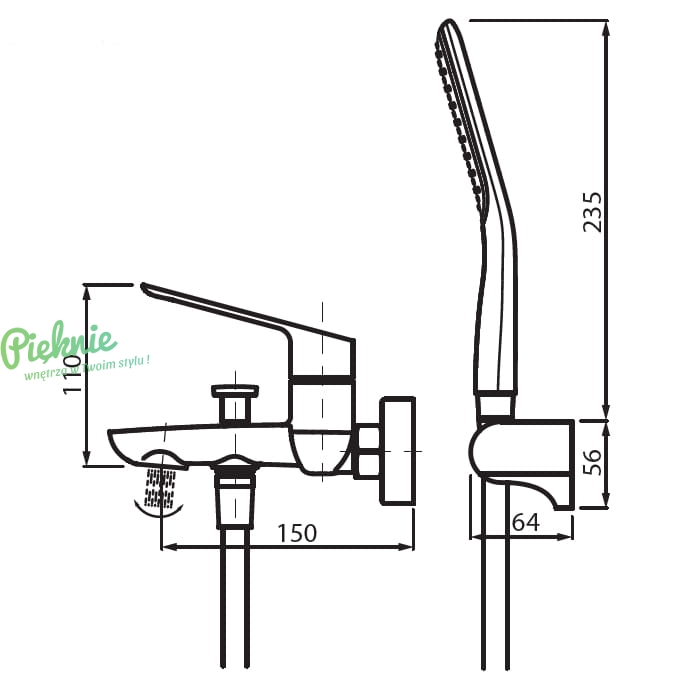 - Uchwyt słuchawki natryskowej z regulacją: ABS