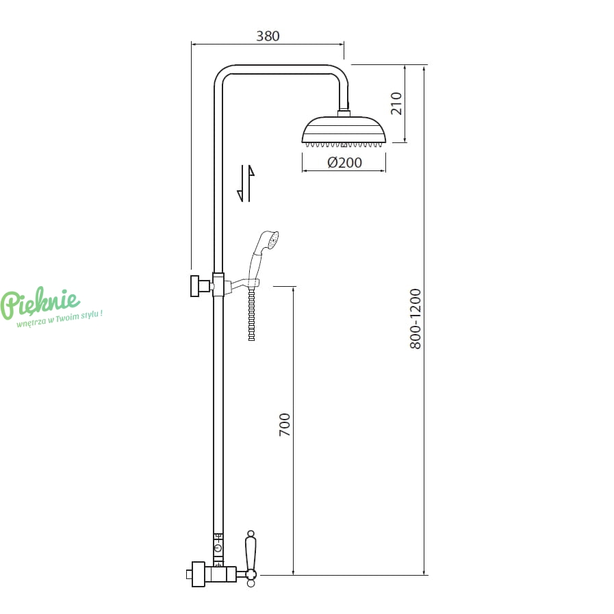 Kolumna natryskowa Vedo Etros w stylu retro z deszczownią.