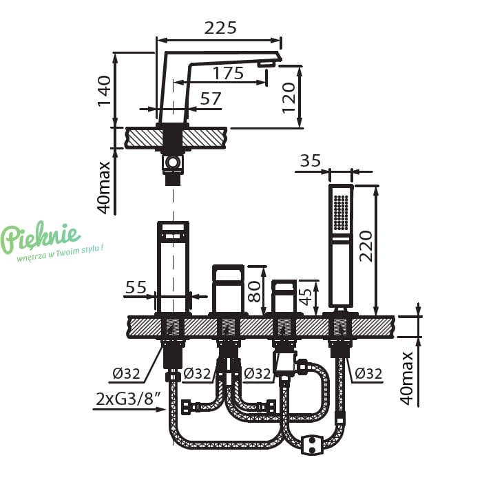 - System wymiany węża natryskowego bez konieczności demontażu wanny