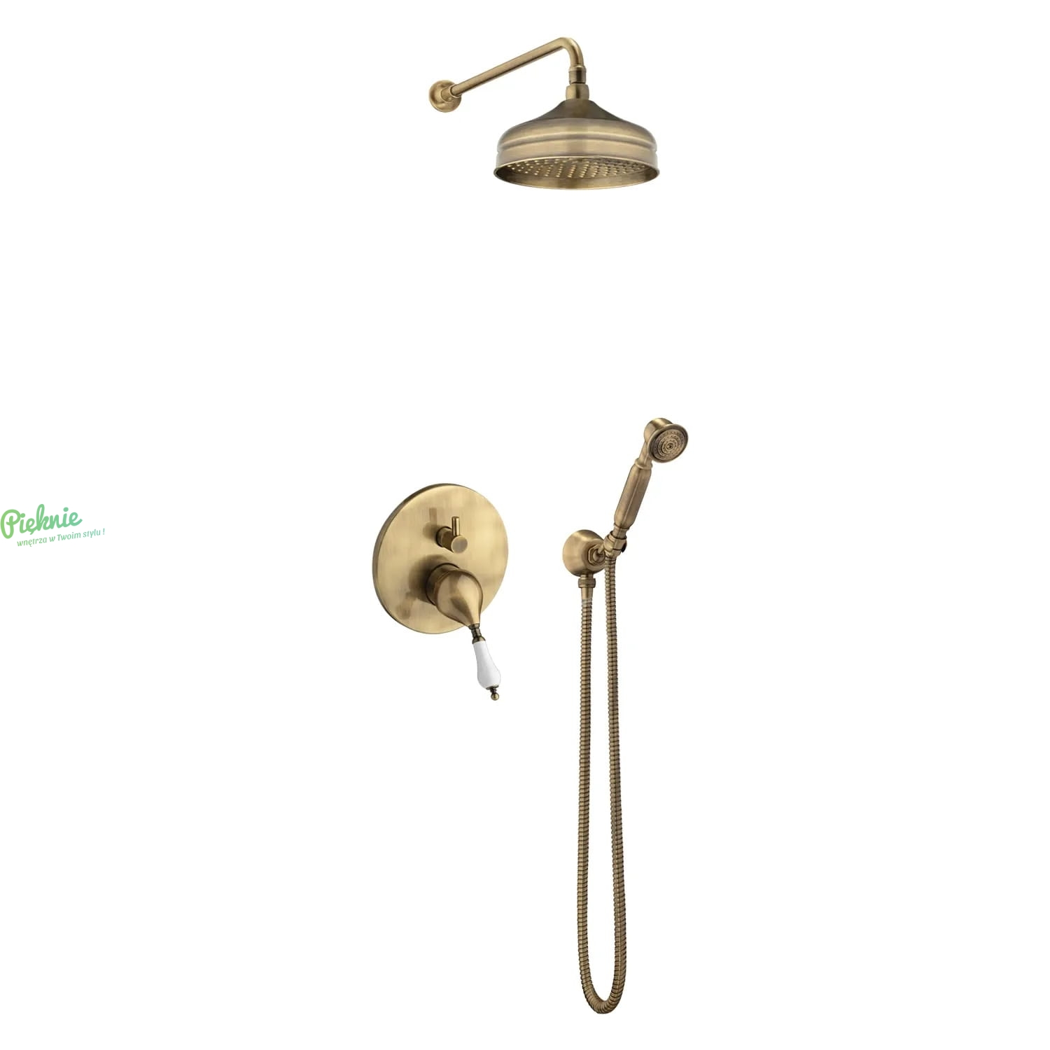 Zestaw natryskowy w stylu retro w kolorze antycznego brązu z deszczownią.
