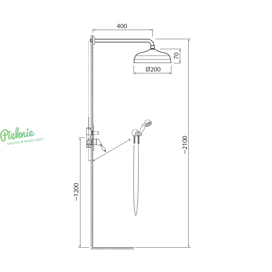 - przyłącze z reg. uchwytem słuchawki natryskowej: mosiądz