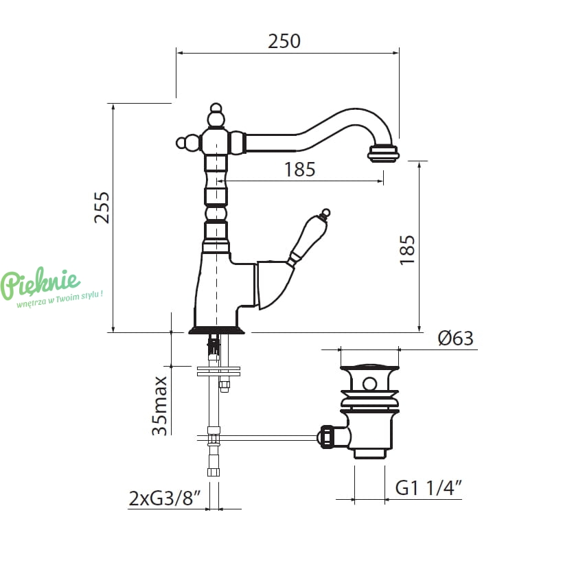 Vedo Vara Bronzo to stylizowana na retro armatura łazienkowa w eleganckim kolorze antycznego brązu, wzbogacona o klasyczne białe uchwyty. Idealna dla miłośników stylu vintage, łączy w sobie ponadczasowy design z nowoczesną funkcjonalnością, wnosząc do wnętrza ciepło i wyjątkowy charakter.
